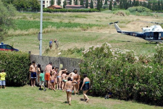 In questi momenti alternava momenti di “lucida follia” cercando di mettersi in contatto con il Pronto Intervento a titolo di sfida per rimarcare la sua abilità nella fuga. Arrivato a Cecina, in provincia di Livorno, ha letteralmente strappato di mano il cellulare ad una donna e pensando di digitare il 112 chiedeva ai carabinieri (che non erano in linea perché non era riuscito a far partire la chiamata) se erano contenti delle “due sorprese” che aveva lasciato a Firenze. Durante la caccia all’uomo è stato fatto atterrare anche un elicottero nei pressi dell’Acqua Village creando preoccupazione e curiosità tra i clienti (nella foto pubblicata dal sito Il Tirreno)