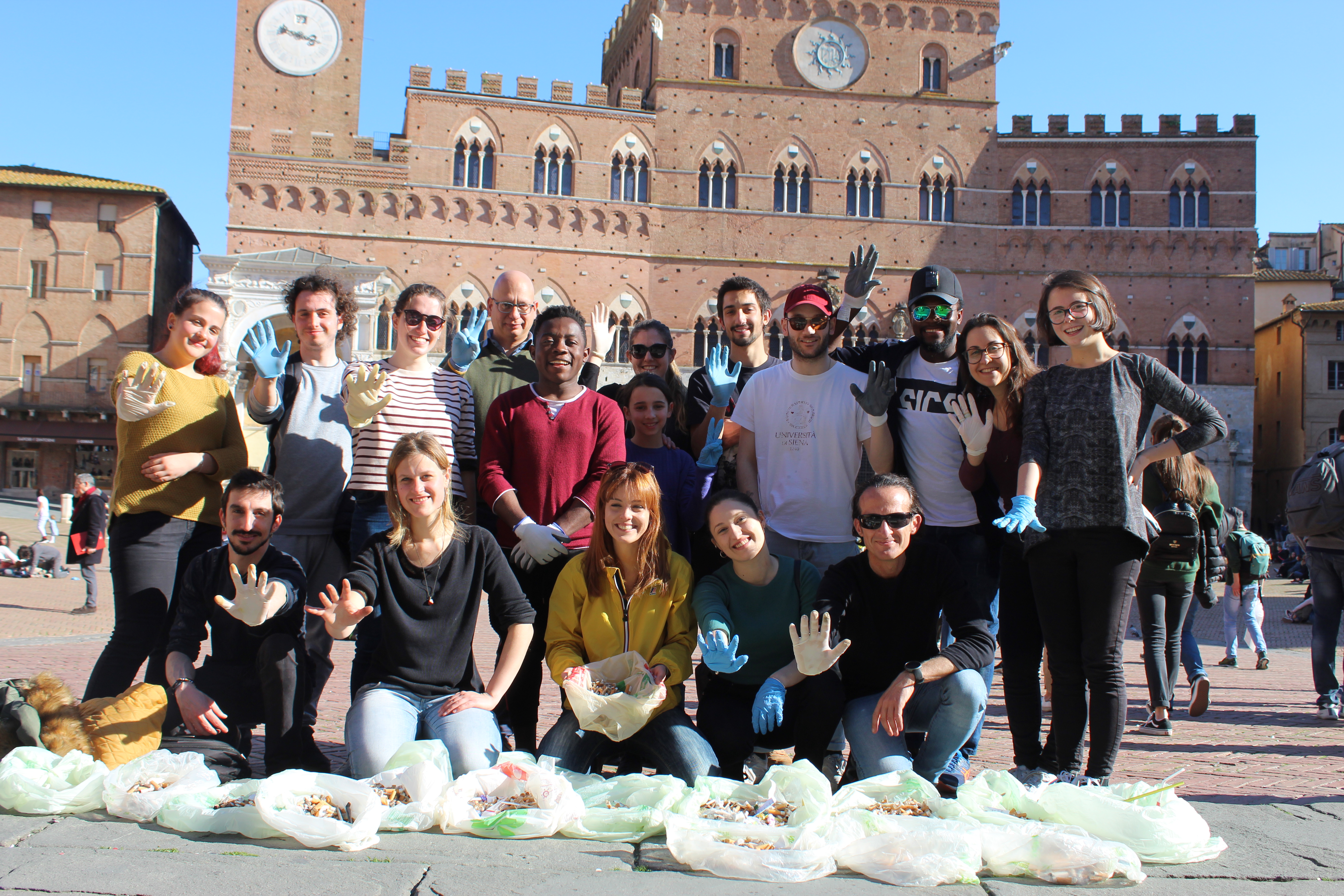 Ieri pomeriggio i ragazzi di Friday for Future sono scesi in Piazza del Campo per raccogliere più mozziconi possibile, sotto un caldo sole primaverile e gli occhi incuriositi dei passanti che si sono offerti di aiutare.