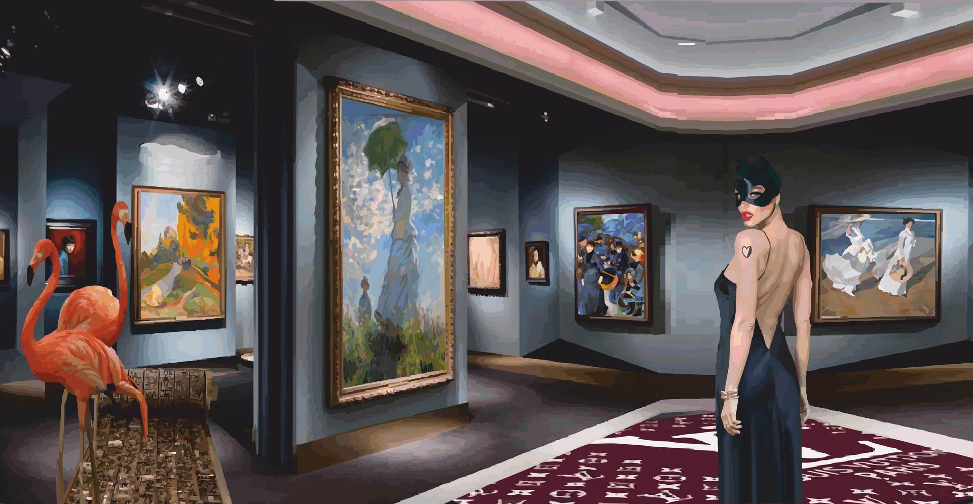 Le soluzioni grafiche caratterizzate da una decisa teatralità, la scelta di cromatismi accentuati e l’elaborazione delle opere in 3D per creare sorprendenti effetti immersivi, portano alla creazione di un percorso affascinante dove la continua sospensione fra realtà, visioni oniriche e situazioni favolistiche, cattura l’attenzione dello spettatore, prima sorprendendolo, poi conquistandolo definitivamente.
