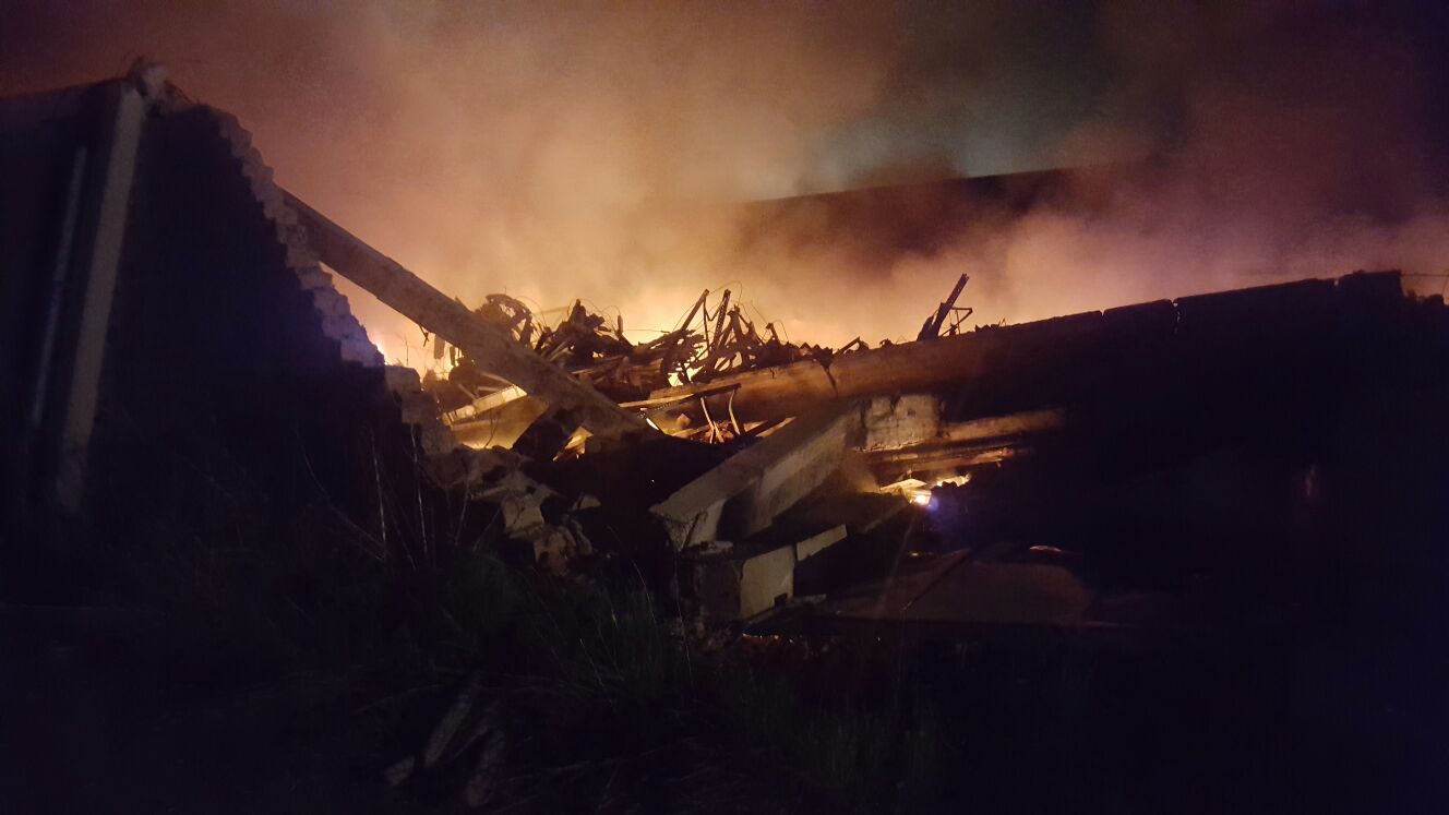 Le spettacolari immagini del rogo divampato a Foiano nella fabbrica della “Tab”, ditta che produceva cabine per doccia, chiusa da circa un anno. Le fiamme hanno distrutto due capannoni, provocando il crollo del tetto in eternit.