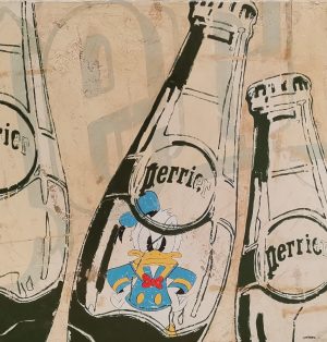 Marchi storici, slogan, fumetti, attraverso la pittura di Crivellaro acquisiscono un valore iconico: i prodotti di un benessere che segnava gli albori del consumismo, sono protagonisti di tele intonacate con stucchi e cementi e lavorate in maniera stratificata, con tecniche che richiamano la scultura.