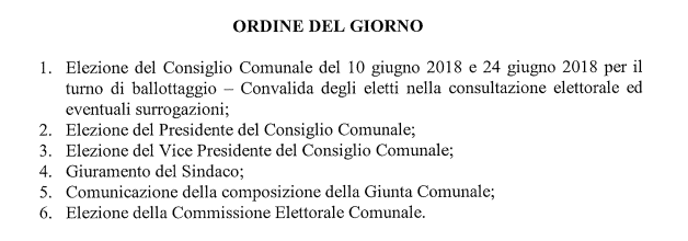Saranno eletti il presidente del Consiglio comunale e il suo vice