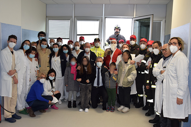 «Ci tenevamo quest’anno a organizzare un evento diverso rispetto al passato – ha aggiunto l’ingegner Paolo Bruno De Paola, comandante provinciale dei Vigili del Fuoco di Siena -. Abbiamo ripreso questa tradizione che avevamo prima del Covid, così abbiamo deciso di far salire Babbo Natale dall’autoscala permettendo ai bambini ricoverati di vederlo arrivare dalla finestra e salutarlo. Per noi è sempre un enorme piacere venire in ospedale e portare doni ai piccoli pazienti».
