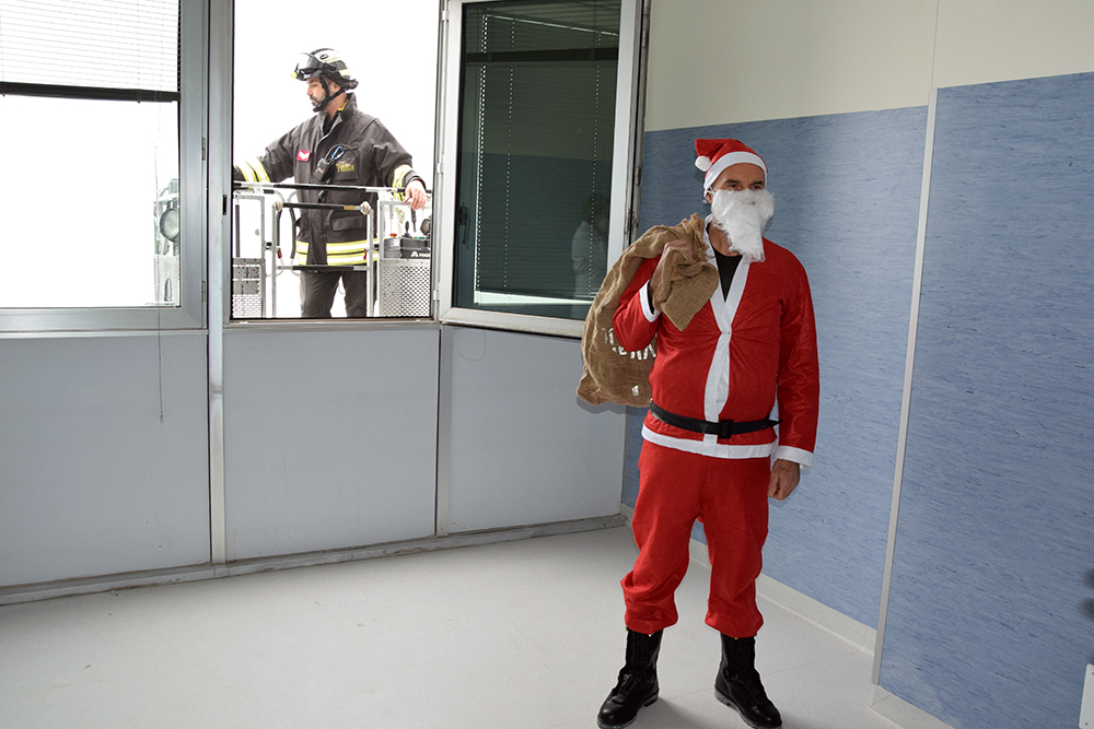 Sono stati infatti i Vigili del Fuoco ad inaugurare il ciclo di eventi natalizi all’Azienda ospedaliero-universitaria Senese, portando doni e gioia ai piccoli pazienti ricoverati nel Dipartimento della Donna e dei Bambini e in Neuropsichiatria infantile. Una donazione resa ancor più speciale dall’arrivo di Babbo Natale “Pompiere” che è salito ai piani più alti dell’ospedale con l’autoscala dei Vigili del Fuoco ed è entrato da una finestra del lotto 4.