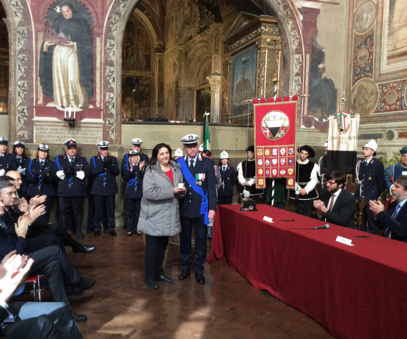 Il vicesindaco Corsi portando i saluti del Sindaco ha sottolineato quanto: “la festa del Corpo della Polizia Municipale rappresenti un momento di forte emozione”, ricordando come “tutti i giorni gli agenti si “vestono con la Balzana” per portare a compimento i propri doveri. Un compito non facile considerando che le cose belle non sono mai facili, e ancora di più quelle bellissime come Siena. Una città complessa per identità, conformazione e per lo stesso attaccamento che i senesi hanno nei suoi confronti necessita, infatti, di sensibilità e attenzioni particolari, come quella per il suo decoro. Nel corso del 2019 sono state ben 681 le violazioni di cui circa 400 relative al regolamento per i rifiuti. Un sostanziale aumento, quasi raddoppiato, rispetto agli scorsi anni”.