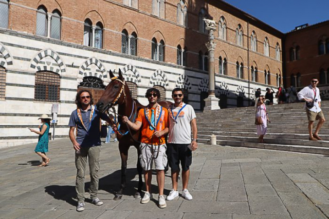 Il maltempo ha solo rimandato di qualche giorno il giro della vittoria della Contrada del Leocorno, che festeggia il trionfo di Giovanni Atzeni detto Tittìa su Violenta da Clodia nella Carriera corsa il 17 agosto.
