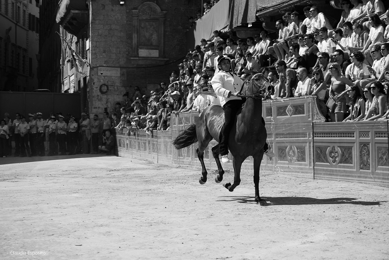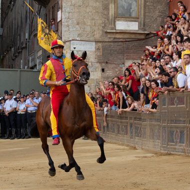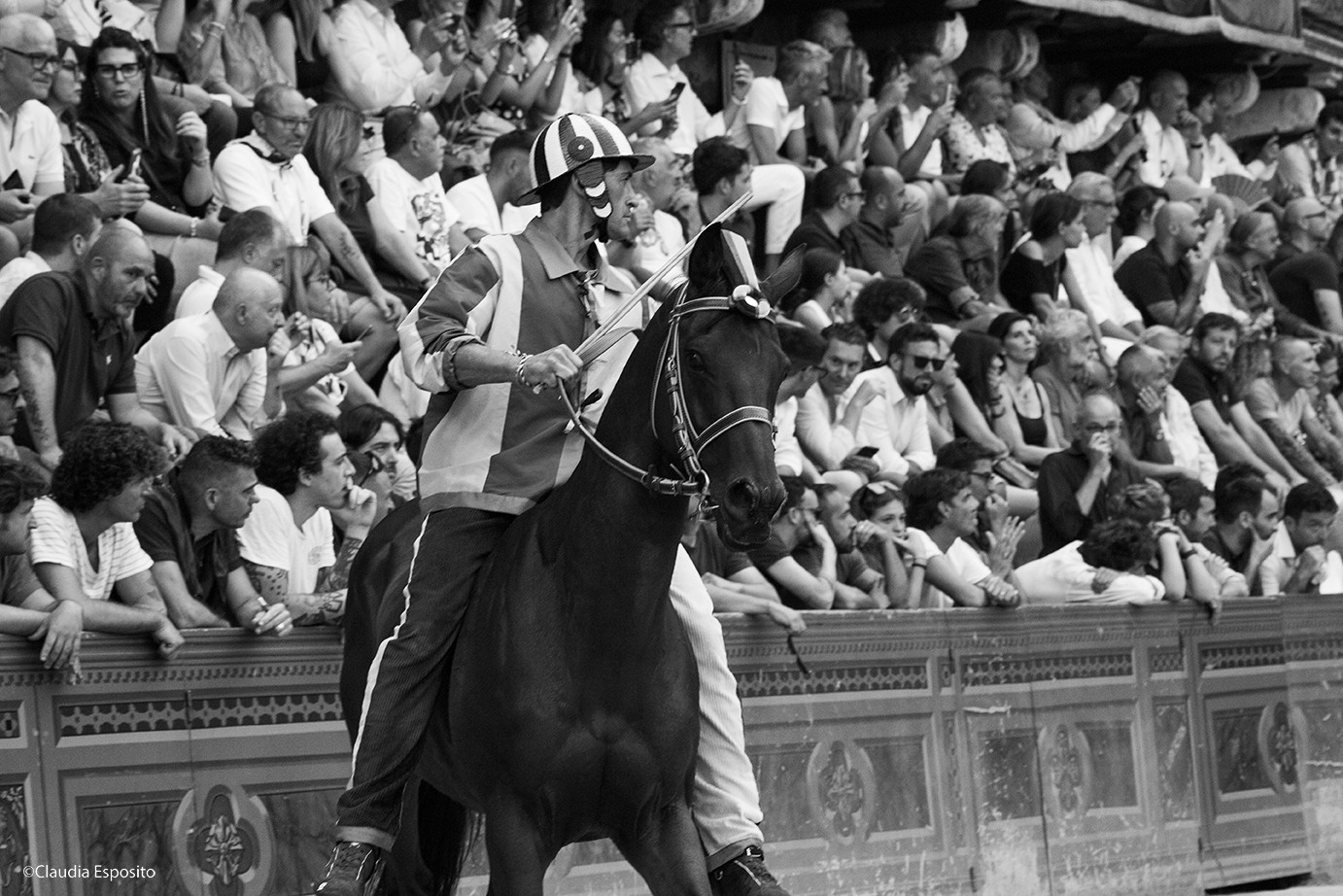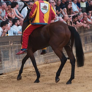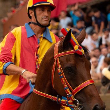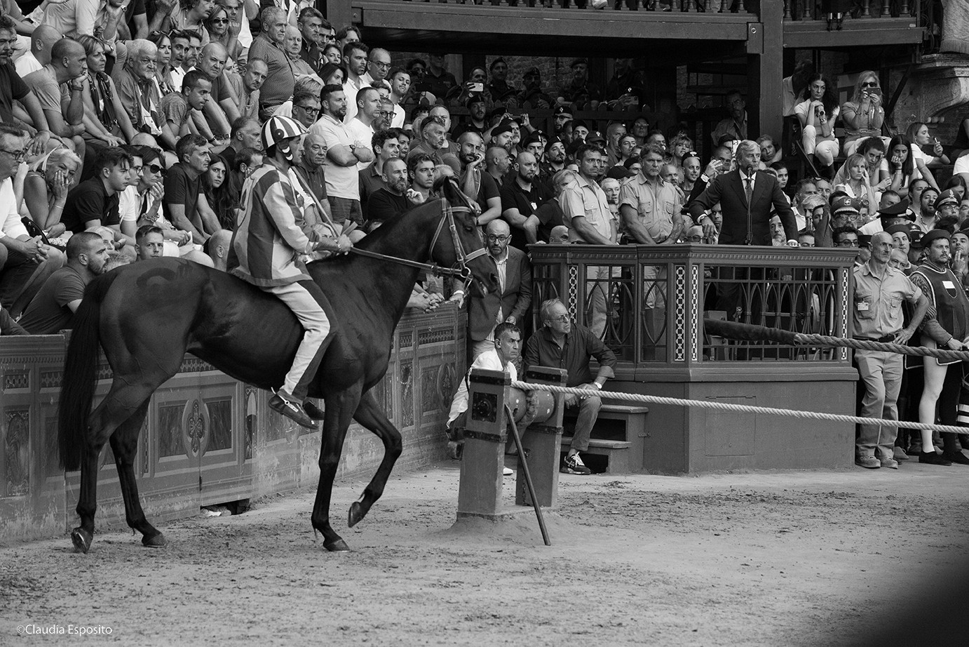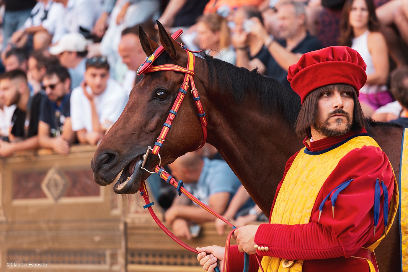 Continuiamo il nostro giro virtuale nelle contrade che hanno partecipato alla carriera di Provenzano per rivivere le emozioni dei giorni del Palio di luglio che si è appena concluso con le immagini “rubate” da Claudia Esposito per Radio Siena Tv. Oggi è la volta della Contrada della Chiocciola,  che ha affidato l’esordiente Anda e Bola a Jonatan Bartoletti detto Scompiglio.