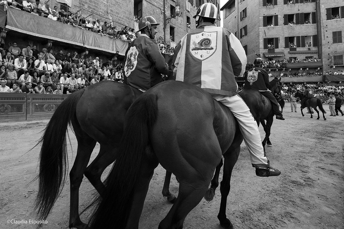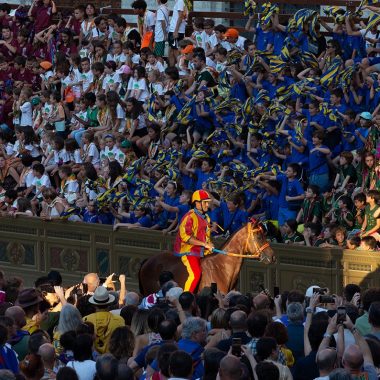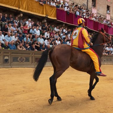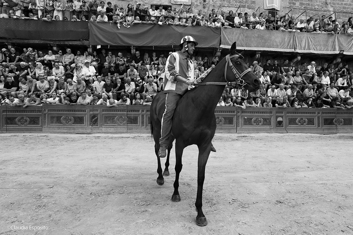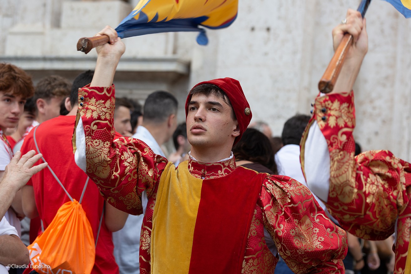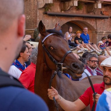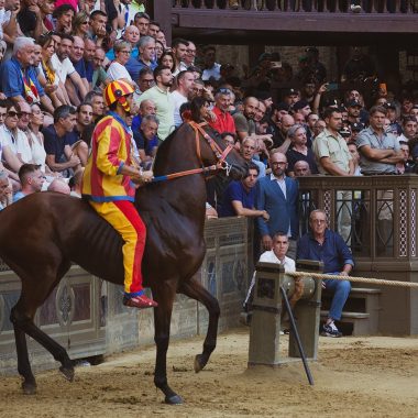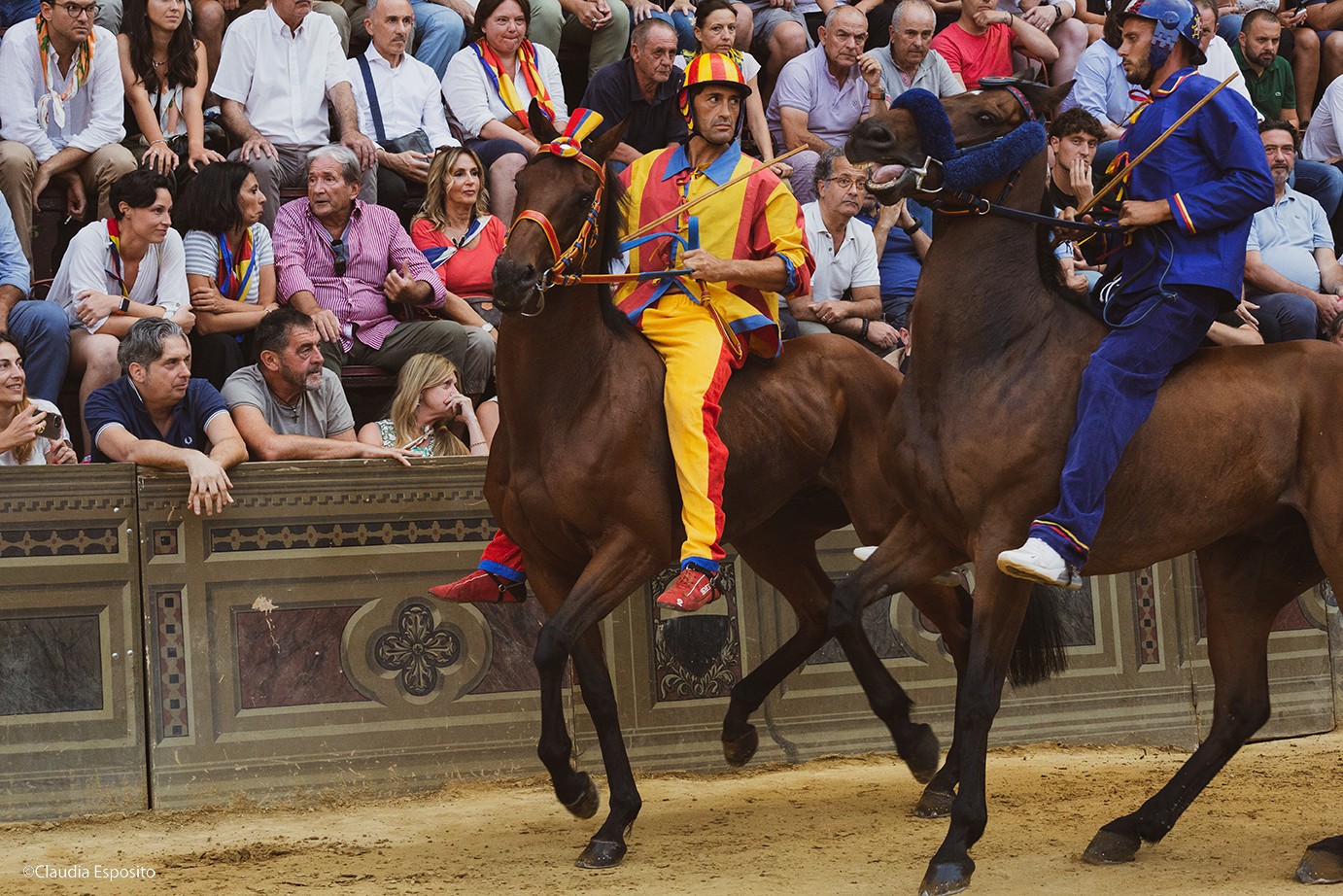 Continuiamo il nostro giro virtuale nelle contrade che hanno partecipato alla carriera di Provenzano per rivivere le emozioni dei giorni del Palio di luglio che si è appena concluso con le immagini “rubate” da Claudia Esposito per Radio Siena Tv. Oggi è la volta della Contrada della Chiocciola,  che ha affidato l’esordiente Anda e Bola a Jonatan Bartoletti detto Scompiglio.