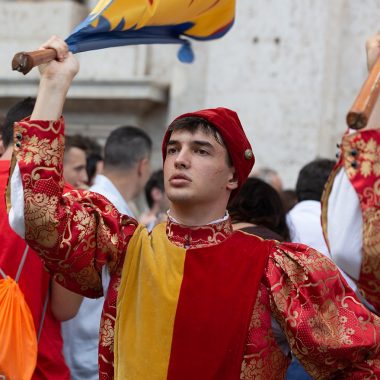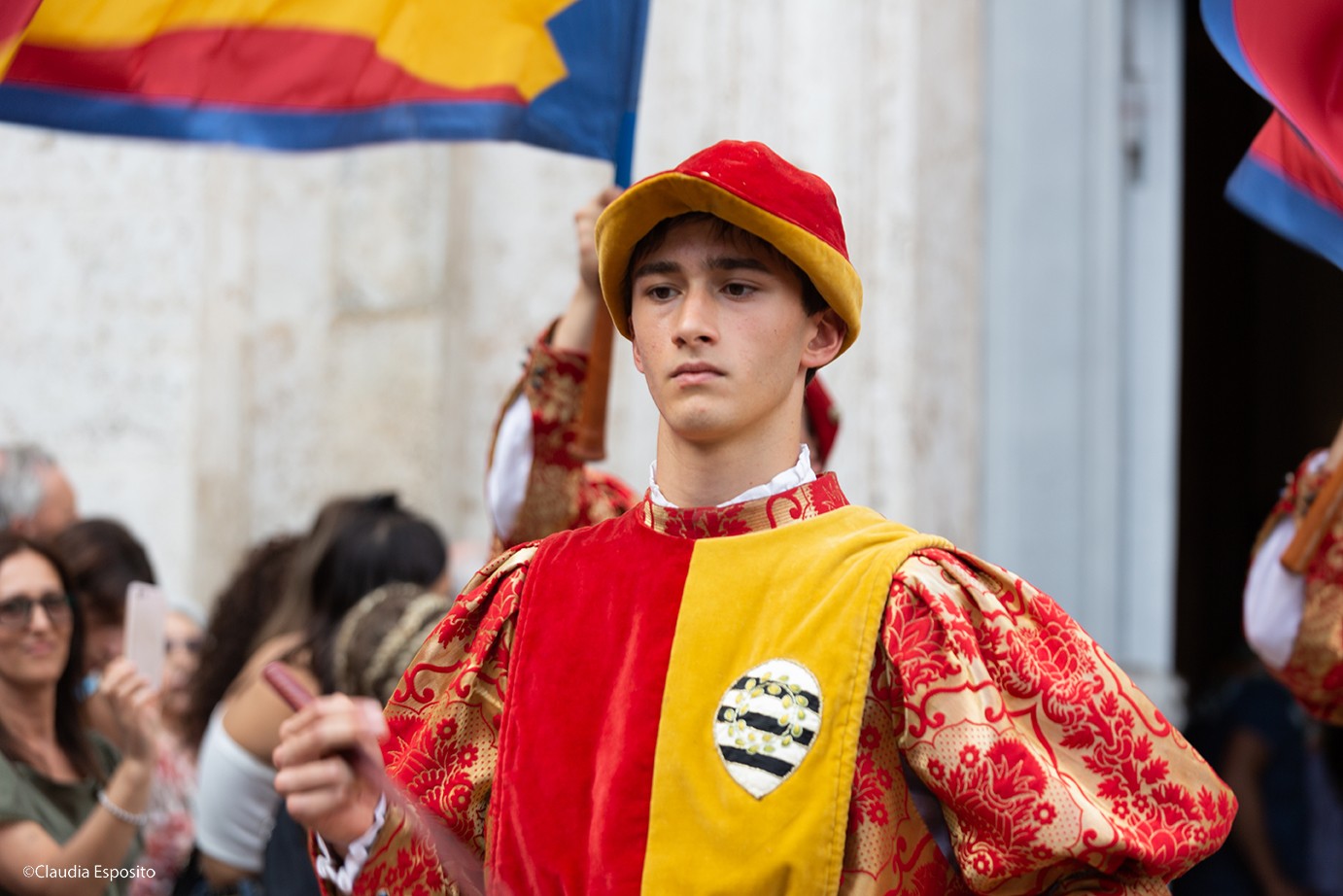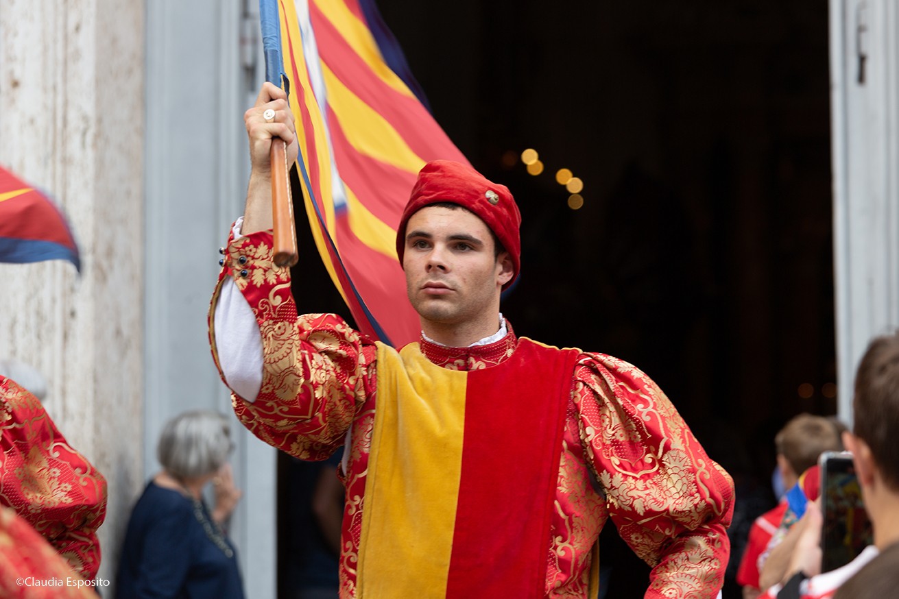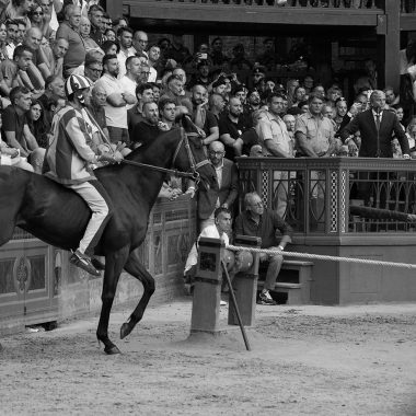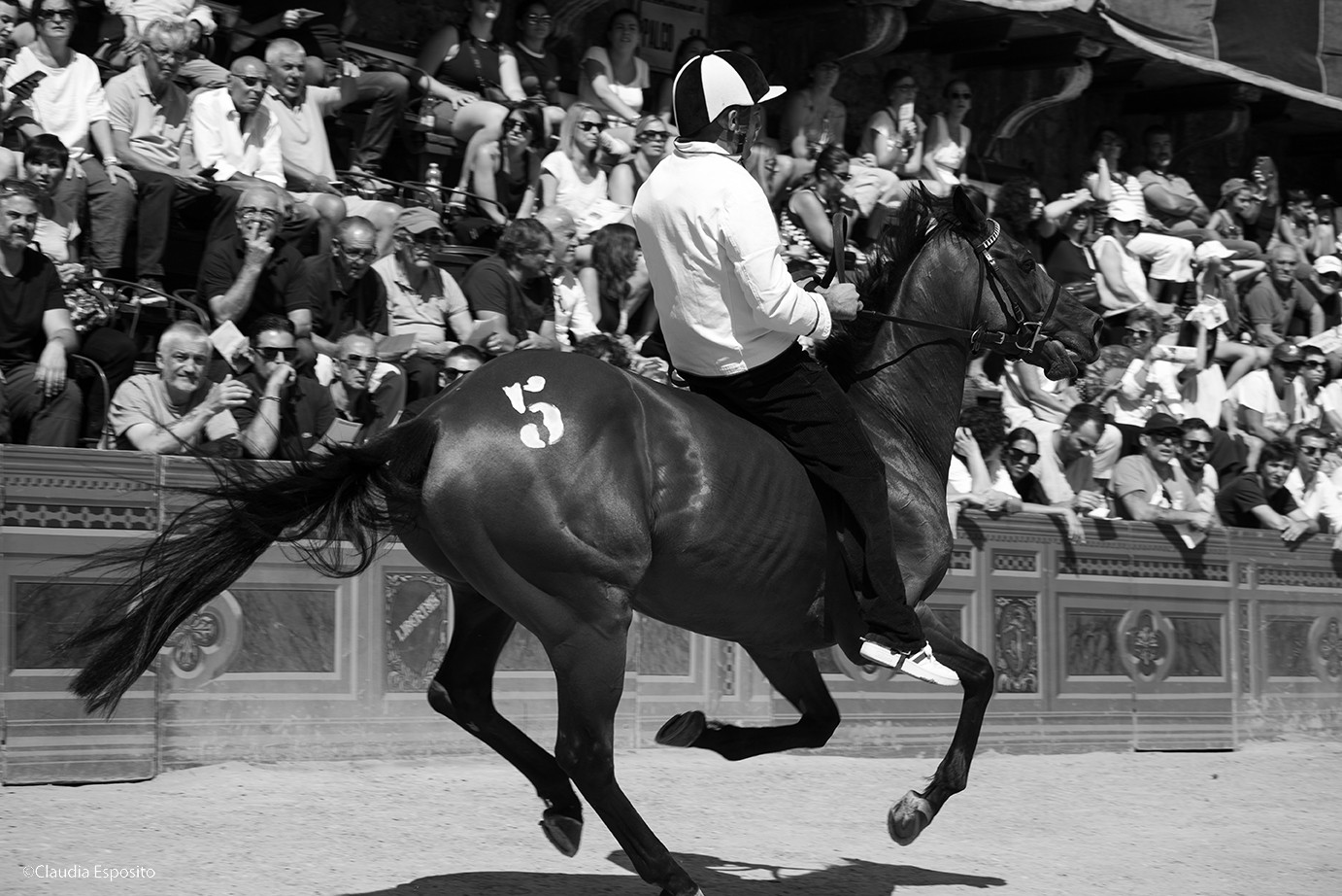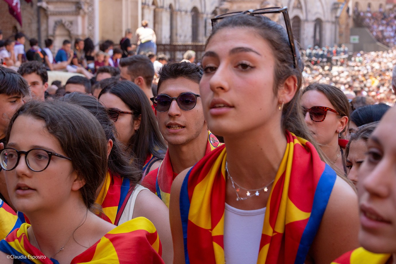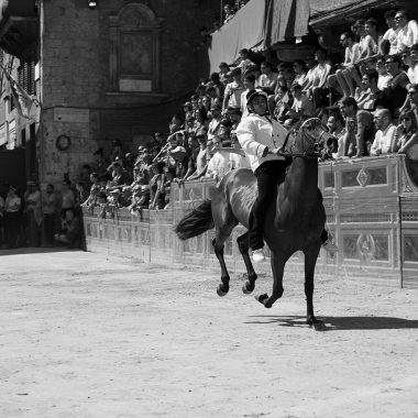 Continuiamo il nostro giro virtuale nelle contrade che hanno partecipato alla carriera di Provenzano per rivivere le emozioni dei giorni del Palio di luglio che si è appena concluso con le immagini “rubate” da Claudia Esposito per Radio Siena Tv. Oggi è la volta della Contrada della Chiocciola,  che ha affidato l’esordiente Anda e Bola a Jonatan Bartoletti detto Scompiglio.