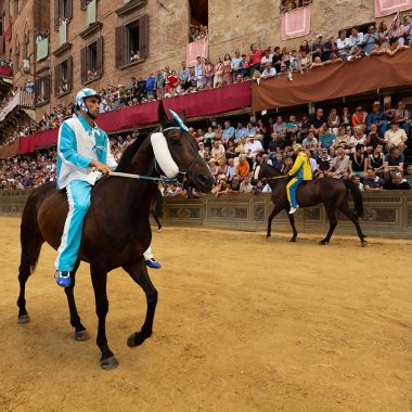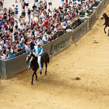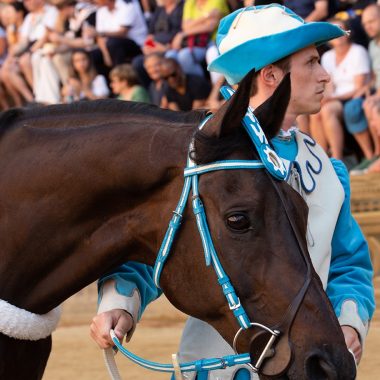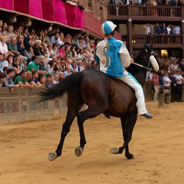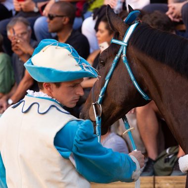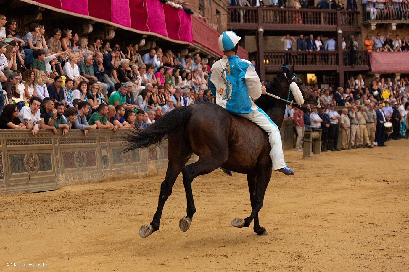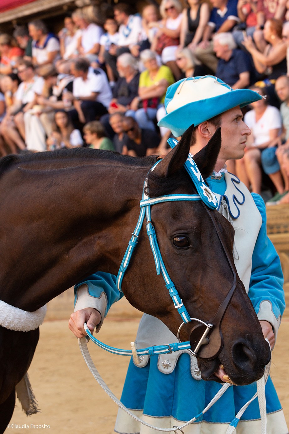 Oggi è la volta della Contrada Capitana dell’Onda, che ha avuto in sorte Viso d’Angelo, montato da Carlo Sanna detto Brigante.