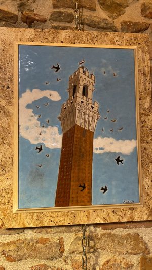 La simbologia paliesca e la sua tradizione trasposta in ceramica. E’ l’arte di Maria Letizia Bosnjak, che ha esposto le sue opere al Caffè19zero3 ieri martedì 28 giugno con la mostra “Siena città di sogni, quando gli smalti si fondono..col cuore”. Ferri di cavallo, la Torre del Mangia, i barberi e Piazza del Campo nel repertorio dell’artista, insegnante, che fin da bambina ha coltivato da autodidatta la passione per il disegno e la pittura, rivelando forte sensibilità per il colore. Un incontro, quello con la ceramica, avvenuto 20 anni fa, che ha prodotto una passione cresciuta sempre di più con la realizzazione di oggetti unici.
