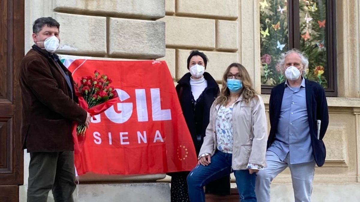 Nonostante il Covid-19, la CGIL di Siena, con lo slogan ‘L’Italia si cura con il lavoro’, ha celebrato la Festa delle lavoratrici e dei lavoratori, anche se in forma ridotta, con tante iniziative sul territorio. Il sindacato ha omaggiato con mazzi di garofani rossi alcuni luoghi di lavoro simbolici della prima fase pandemica ed un pensiero floreale è stato rivolto anche ai caduti sul lavoro, a Siena nel ponte a loro intitolato e ad Abbadia San Salvatore nei pressi nel monumento a loro eretto.