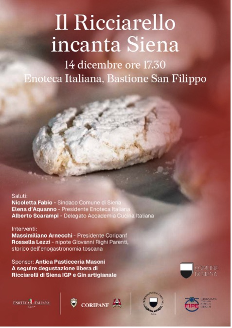 “Il Ricciarello incanta Siena” nasce per volontà del Comune di Siena, con la collaborazione di Coripanf (i Comitati per la promozione dei Ricciarelli e del Panforte di Siena Igp), Federalberghi di Siena e provincia, e Fipe (Federazione Italiana Pubblici Esercizi).