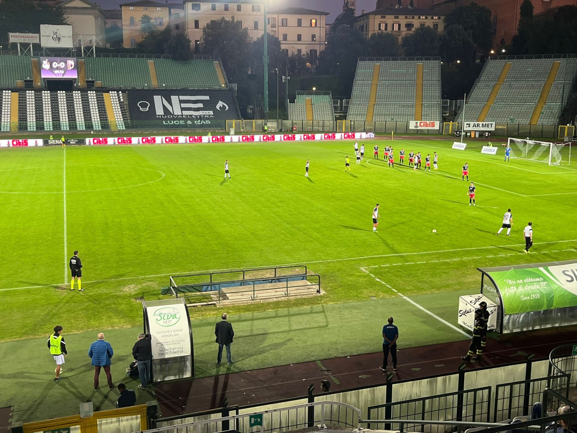 La seconda frazione si apre con una grande occasione del Siena, Buglio si trova a tu per tu con Stancampiano ma manda di poco a lato. Manni poi è ancora perfetto nell’intervento su Petrovic che ha calciato da distanza ravvicinata. Il Pontedera sfiora il gol pochi istanti dopo di nuovo con Petrovic che centra il palo. Sempre gli ospiti hanno una buona occasione da corner, Bonfanti di testa manda a lato. Il Siena si scuote creando una buona occasione con Meli che sul più bello viene murato da un difensore.