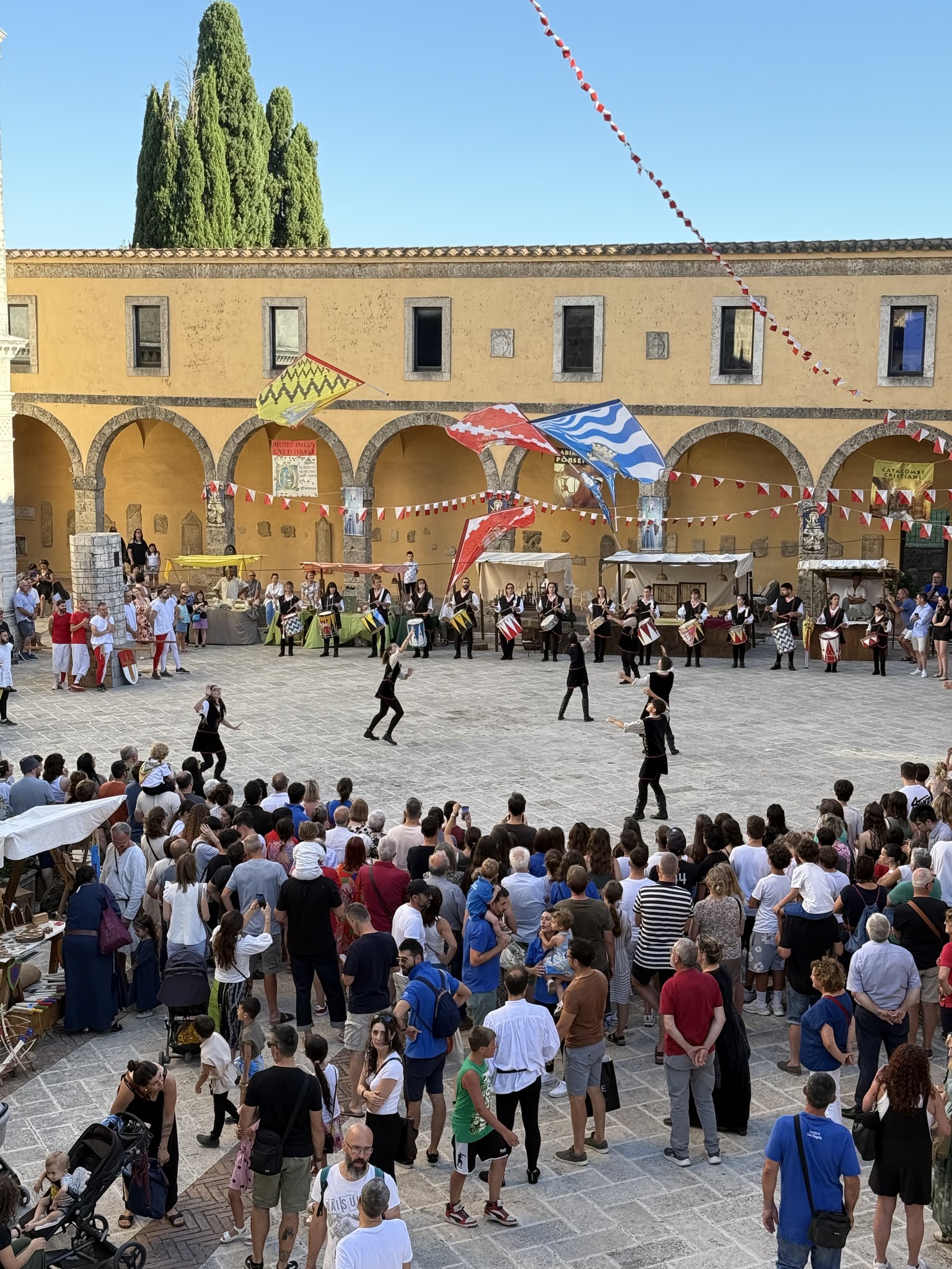 Per tre giorni il centro storico si è trasformato in un palcoscenico a cielo aperto, tra spettacoli, musica e rievocazioni, richiamando cittadini e visitatori in un clima di festa. Tra le novità più apprezzate, il corteo storico in notturna che ha sfilato per la prima volta giovedì 26 giugno, intrecciandosi con la solenne processione per l’apertura dell’urna di Santa Mustiola in Duomo, dando vita a un suggestivo momento di devozione e memoria storica.
