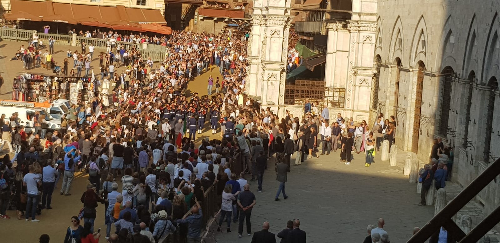 La partecipazione è stata voluta dall’Associazione Nazionale Bersaglieri per omaggiare il Palio straordinario del 20 che si corre in onore dei 100 anni dalla fine della Grande Guerra. I Bersaglieri torneranno il giorno del Palio Straordinario alle 14.45, subito dopo il Drappello dei Carabinieri a cavallo – che per questa occasione effettuerà il giro di Piazza al passo per tutelare la tenuta del tufo – la Fanfara, composta da circa 30 elementi, farà il suo ingresso in Piazza Del Campo dalla bocca del Casato e si porterà verso la Mossa al passo da dove, in omaggio alle Autorità ed a tutti i presenti, partirà con il tradizionale “passo di corsa” per poi lasciare la Piazza.