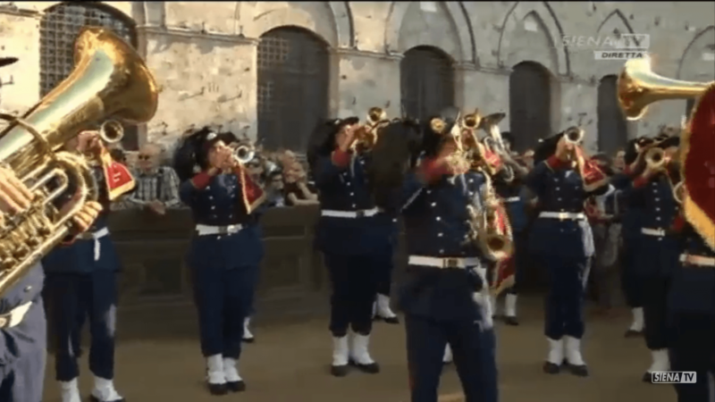 La partecipazione è stata voluta dall’Associazione Nazionale Bersaglieri per omaggiare il Palio straordinario del 20 che si corre in onore dei 100 anni dalla fine della Grande Guerra. I Bersaglieri torneranno il giorno del Palio Straordinario alle 14.45, subito dopo il Drappello dei Carabinieri a cavallo – che per questa occasione effettuerà il giro di Piazza al passo per tutelare la tenuta del tufo – la Fanfara, composta da circa 30 elementi, farà il suo ingresso in Piazza Del Campo dalla bocca del Casato e si porterà verso la Mossa al passo da dove, in omaggio alle Autorità ed a tutti i presenti, partirà con il tradizionale “passo di corsa” per poi lasciare la Piazza.
