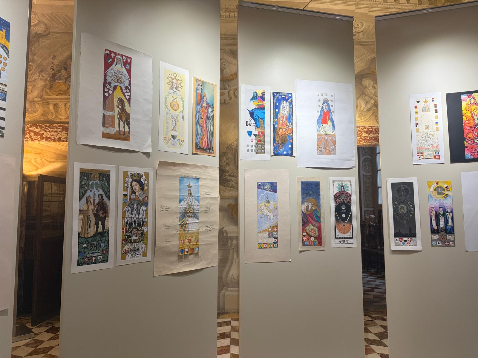 La mostra, aperta al pubblico dal 21 ottobre al 20 novembre, dal lunedì al venerdì negli orari 10.30-13 e 16-19, e il sabato dalle 16 alle 19, sarà l’occasione per scoprire il processo creativo che ha preceduto la realizzazione del Drappellone e per ammirare le diverse visioni artistiche dedicate alla città e alla sua Festa. All’inizio del Novecento, la pittura del Palio era infatti affidata tramite concorso agli studenti e diplomati dell’Istituto di Belle Arti di Siena. Dopo interruzioni e fasi di affidamento diretto, dagli anni ’60 la commissione veniva assegnata a vincitori di concorsi locali o ad artisti senesi di rilievo. Negli anni Novanta l’amministrazione comunale assegnava la pittura del Drappellone in via diretta, mentre a partire dal Duemila, in alcune occasioni, la committenza è stata affidata tramite concorso agli artisti locali. Per il 2025, tra i numerosi bozzetti pervenuti al Comune, è stata selezionata l’opera di Riccardo Manganelli, protagonista dello scorso Palio di luglio. Il concorso ha dedicato la parte allegorica del Drappellone al quinto centenario dell’Accademia degli Intronati di Siena, celebrando la sua attività letteraria e teatrale che, sin dal Cinquecento, ha contribuito a plasmare la vita culturale della città.