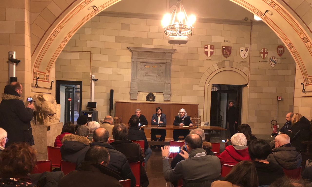 Inaugurata la rassegna d’arte “Tutte le feste giungono a Siena nei percorsi d’arte” a cura di Massimo Lippi. Il vicesindaco Andrea Corsi e l’assessore al Commercio e Turismo Alberto Tirelli insieme al Maestro Lippi hanno presentato alla cittadinanza, nella Sala delle Lupe di Palazzo Pubblico, l’iniziativa che prevede l’installazione di opere d’arte dedicate alle festività del Natale in varie zone della città. Al termine dell’incontro si è tenuta una visita ai “Magazzini del Sole”, all’interno del Magazzini del Sale di Palazzo Pubblico.