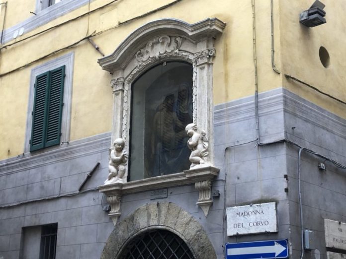 Si è svolta questa mattina l’inaugurazione del restauro della Madonna del Corvo, lavoro diretto dall’Arte degli Speziali, associazione di volontariato della contrada della Pantera. “Era una richiesta degli abitanti della zona e dei contradaioli da tanti anni”, spiega il presidente dell’associazione Stefano Maestrini. “Si voleva eliminare la separazione centrale metallica che ormai era arrugginita e anche recuperare l’edicola e in parte il dipinto. Grazie all’aiuto dei soci e di contributi siamo riusciti in questo progetto. E’ un pezzo di storia della contrada, oggi presenteremo anche un libro sulla “Madonna del Corvo” scritto da Alessandro Leoncini perchè la storia della Madonna e del palazzo è molto interessante e coinvolge anche le contrade”.