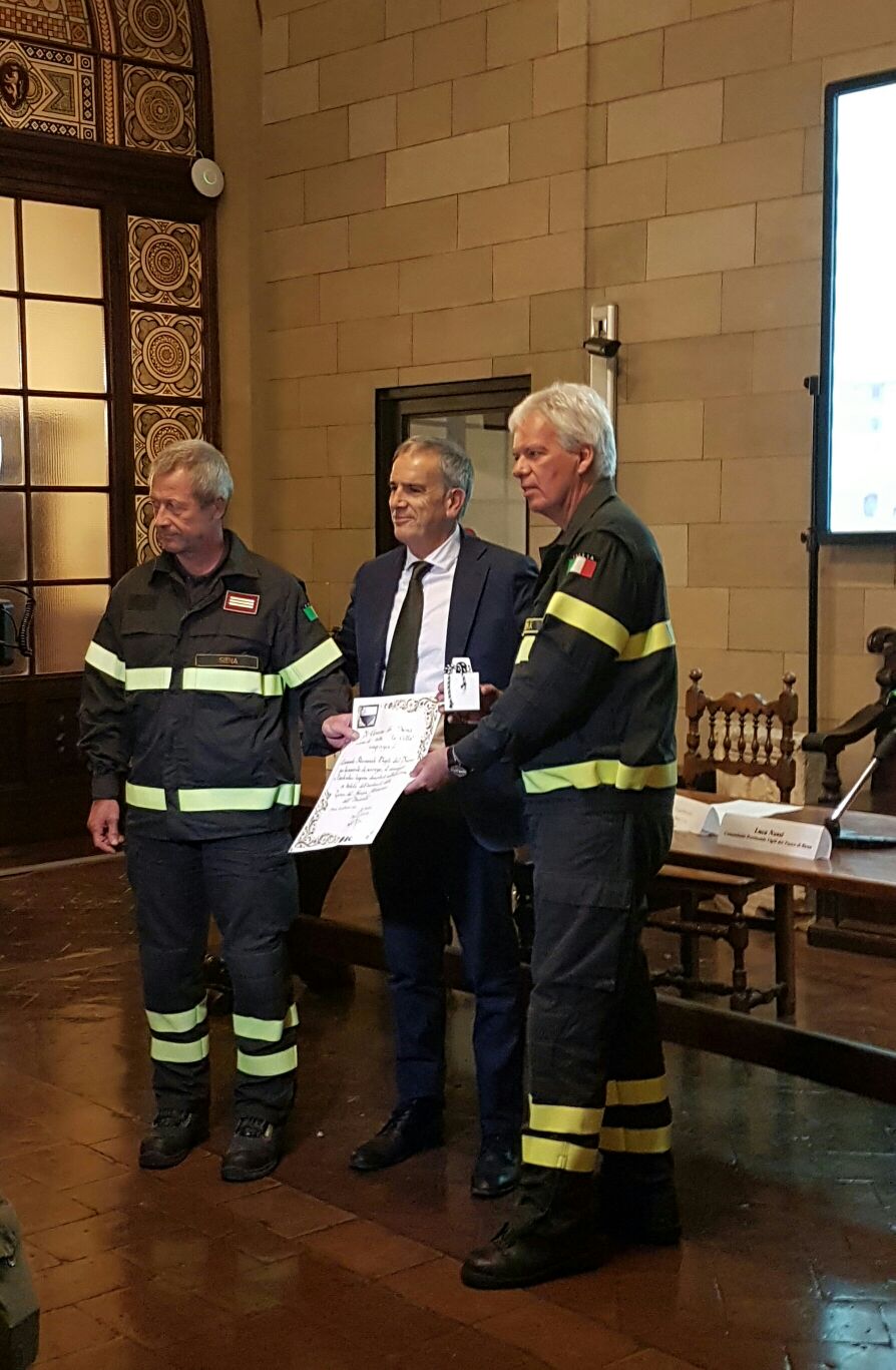 Dopo le parole del comandante provinciale dei vigili del fuoco Luca Nassi, i ringraziamenti del sindaco Bruno Valentini che ha poi consegnati i riconoscimenti.