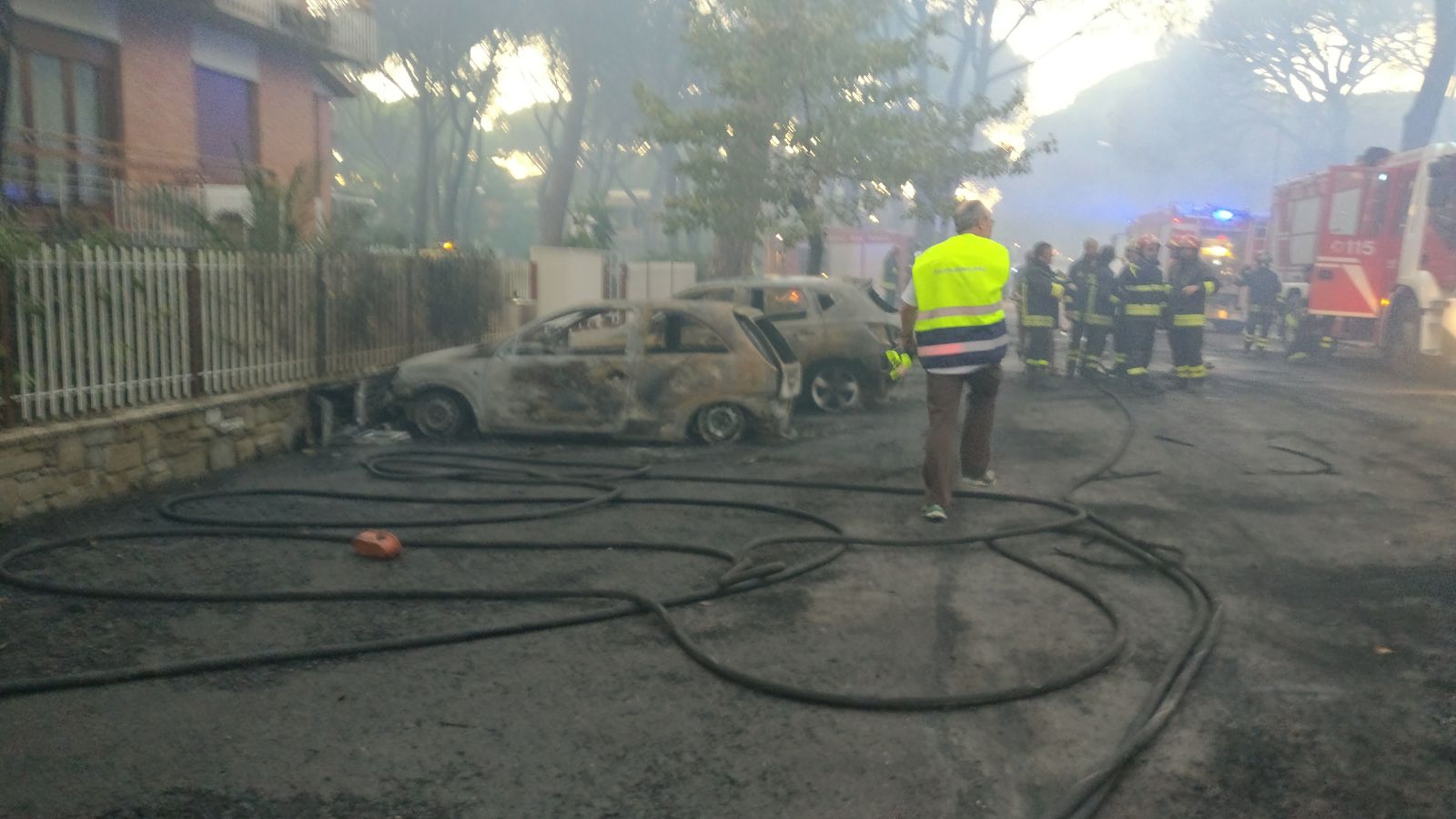 Mentre dalle case la gente si dava alla fuga, i primi ad intervenire sono i volontari del CieloVerde. In questi giorni pattugliano giorno e notte la zona. Poco hanno potuto contro le fiamme che divampavano a velocità impressionante, saltando da un albero all’altro. I più coraggiosi hanno iniziato a tirare acqua dai terrazzi, ma le fiamme arrivavano sui tetti, si propagavano sulle tende.