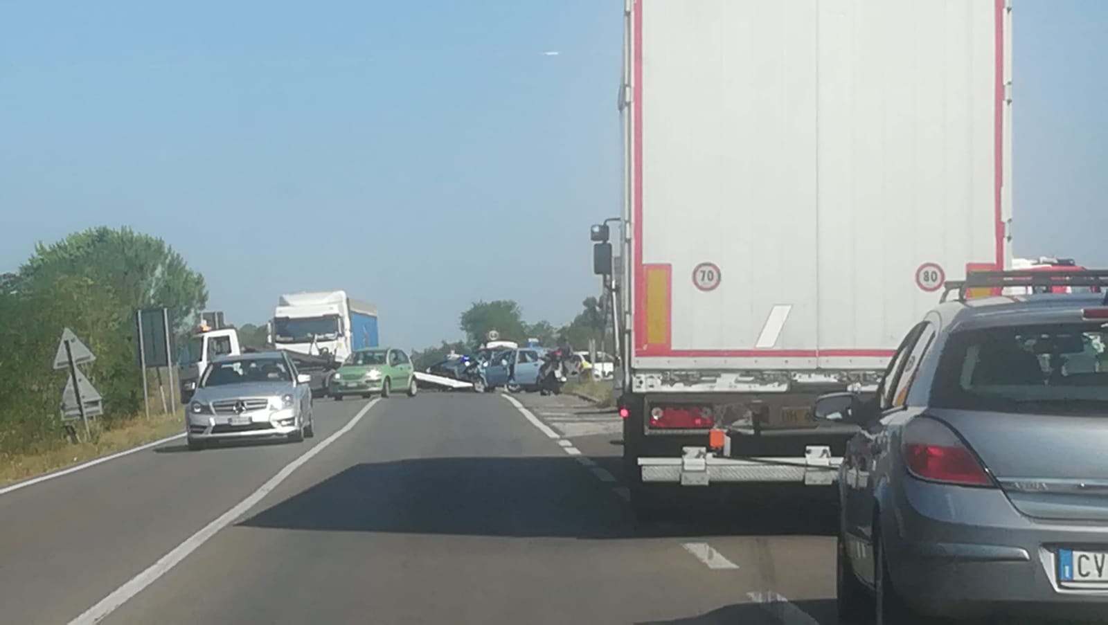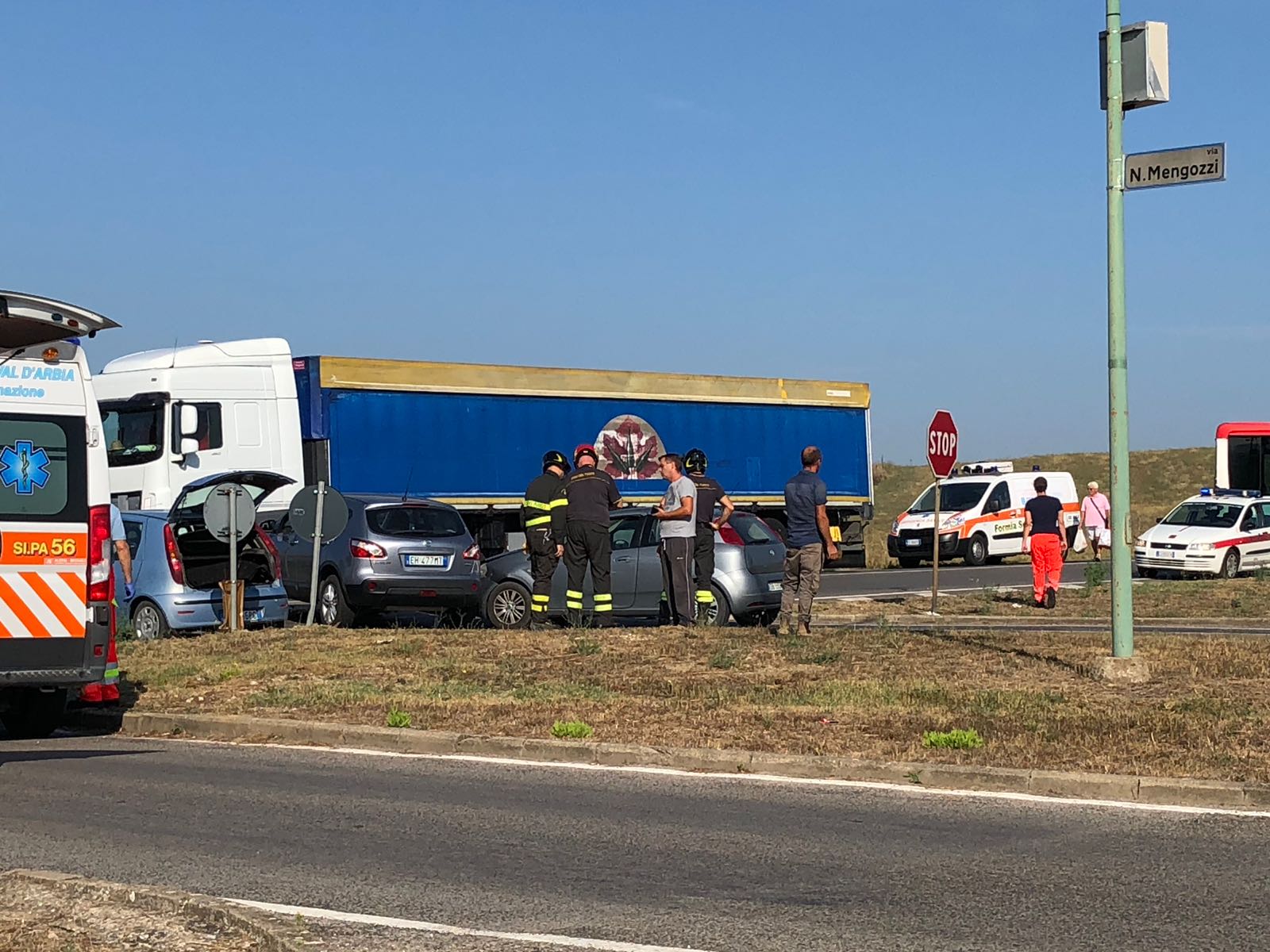 L’incidente ha visto coinvolte due automobili ed un camion. All’arrivo dei vigili del fuoco, che stanno ancora operando non c’erano persone ancora all’interno delle autovetture. Presenti sul posto anche la Polizia e la Polizia Municipale.