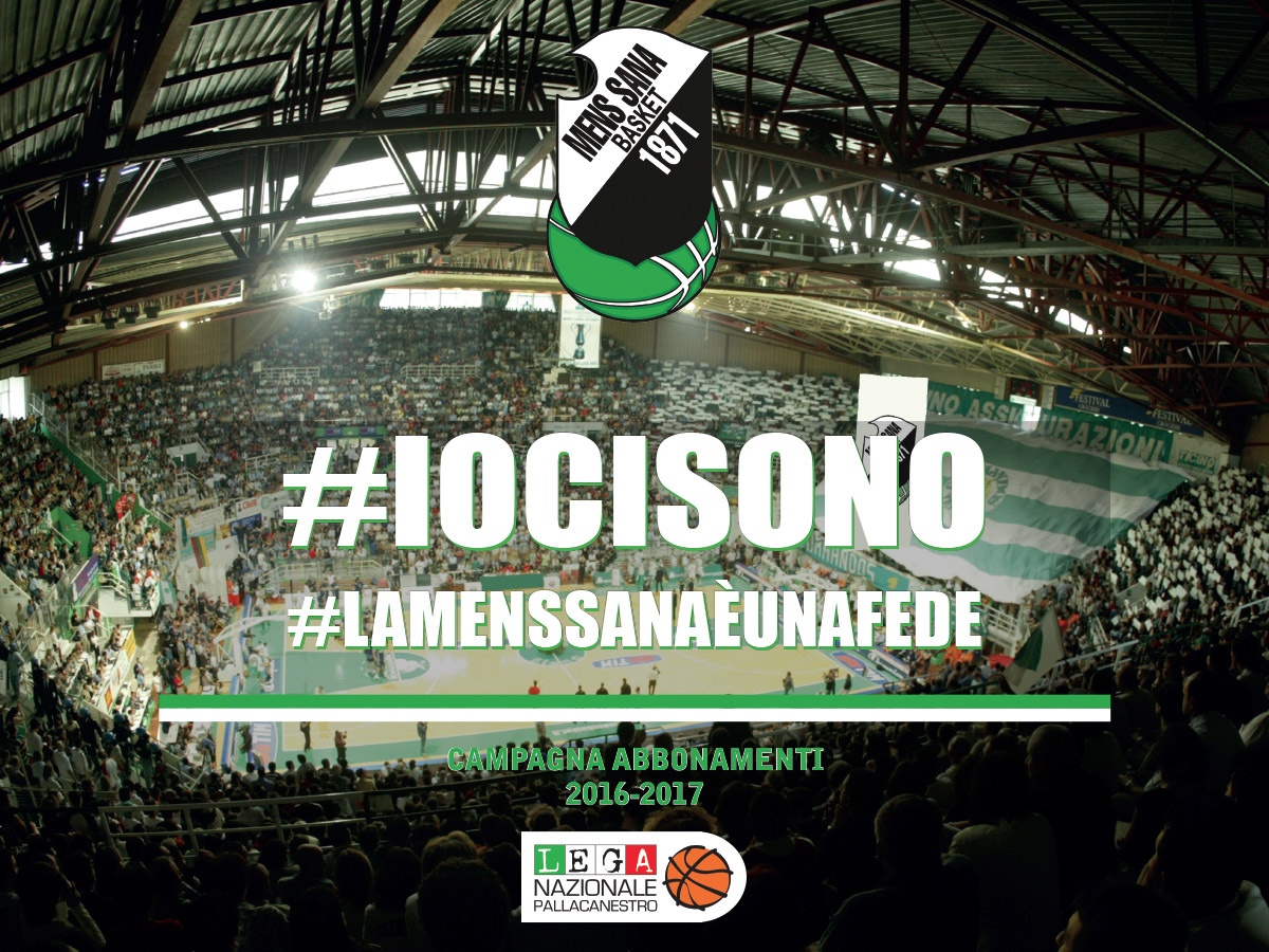 Alcuni di noi si sono occupati in toto della campagna abbonamenti, all’insegna del claim “Io ci sono”, uno slogan che significa partecipazione, la presenza nella propria casa, il palasport, durante le partite. Un “esserci” non dettato da mode ma perché “la Mens Sana è una Fede”, un’appartenenza al mondo di valori che il Biancoverde rappresenta. Tre sono le partite omaggio se si sottoscrive l’abbonamento in tutti i settori, quattro le partite omaggio se si sottoscrive un abbonamento di curva. I prezzi degli abbonamenti Curve e Ridotti sono più economici dello scorso anno, quelli delle Gradinate sono pressoché invariati mentre si registra un lievissimo aumento degli abbonamenti Poltroncine e Laterali, ma per tutti 3 partite omaggio rispetto al costo dei singoli biglietti, contro le sole due della scorsa stagione.