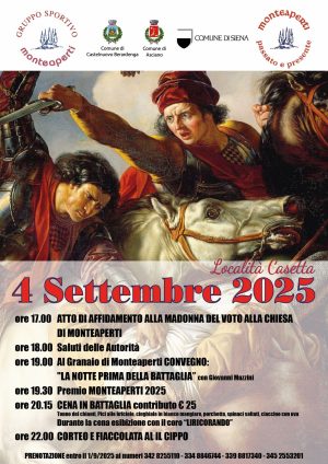 “La notte prima della battaglia” è questo il titolo della conferenza che terrà Giovanni Mazzini, funzionario dell’Archivio di Stato di Siena, in occasione della commemorazione del 4 settembre, data della famosa battaglia di Montaperti. L’evento si terrà domani alle ore 19 al Granaio di Montaperti.