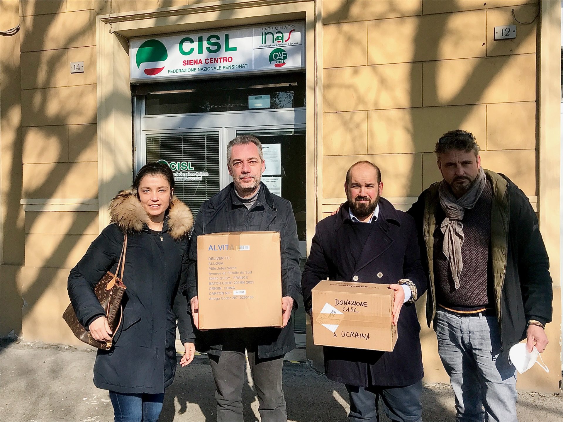 “La Cisl sta con l’Ucraina, per noi non ci può essere altra scelta alternativa”. Così il segretario generale della Cisl Siena Riccardo Pucci che questa mattina ha consegnato nelle mani di cittadini ucraini residenti a Siena, due pacchi di strumenti di prima necessità selezionati dalla Farmacia comunale della Stazione con le risorse raccolte dalle federazioni territoriali.