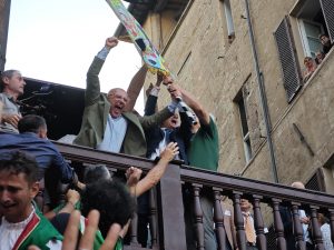 E’ la Contrada dell’Oca, con lo scosso Zio Frac a vincere il Palio del 16 agosto 2023. La Contrada di Fontebranda al rientro dalla squalifica trionfa in un palio drammatico con numerose cadute, fra cui quello dello stesso fantina dell’Oca Carlo Sanna.