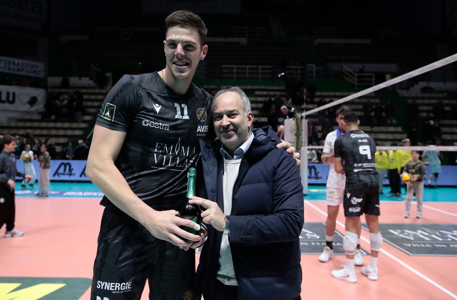 Terzo set Ancora un ace di Gabriele Nelli: 5-2. Il gioco dei senesi continua a essere molto fluido. Cattaneo e Nelli realizzano punti su punti, i biancoblu mantengono un ampio vantaggio. E anche a muro i senesi producono: altro block di Trillini, la Emma Villas si porta sul 20-13. Il ventunesimo punto senese è ancora di Nelli, che continua a essere protagonista fino alla fine dell’incontro. Il terzo set si chiude sul 25-17 con il punto di Matteo Alpini.