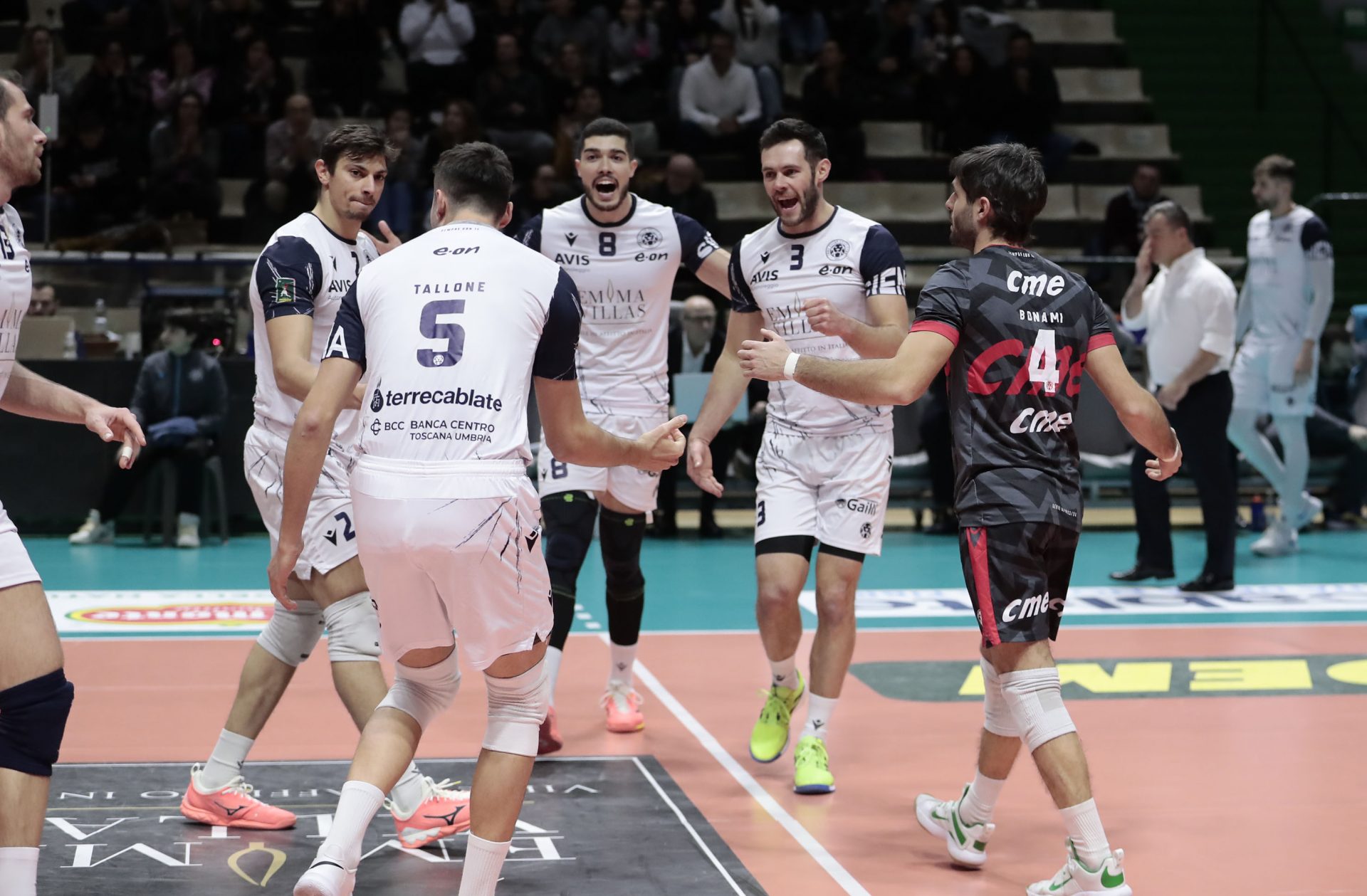 Siena allunga ancora: ci sono due punti di Tallone, una veloce vincente di Trillini e un altro ace della Emma Villas, messo a segno da Pierotti (13-2). Ancora Stefano Trillini a segno, la sua veloce è ancora vincente. Le percentuali in attacco della Emma Villas sono alte. La squadra di casa è avanti 15-4. Pipe di Pierotti per il 16-4. Il set prosegue con questa inerzia e tendenza: i senesi se lo aggiudicano 25-10. Ben 67% in attacco per la Emma Villas in questo set, 5 punti a testa per Copelli e per Pierotti.