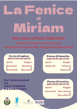 Partiranno a breve e le iscrizioni sono già aperte, i laboratori gratuiti del progetto “La Fenice di Miriam”, rivolti a giovani dai 13 anni in su. Tre percorsi – inglese, fumetto e musica – pensati non solo come attività formative, ma come occasioni concrete di incontro e socialità, con l’obiettivo di contrastare l’isolamento giovanile e creare nuovi spazi di condivisione. Il cuore dell’iniziativa è la biblioteca comunale “Margherita Moriondo”, che da luogo di studio si trasforma in spazio vivo di relazione, capace di accogliere ragazzi e ragazze e accompagnarli nella scoperta dei propri talenti. Il progetto nasce nel ricordo di Miriam, scomparsa a 24 anni: la fenice che portava tatuata sul braccio diventa oggi simbolo di speranza e rinascita per il futuro.