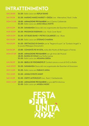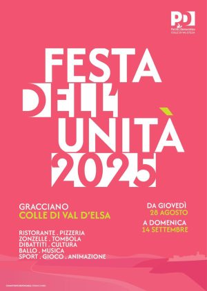 Anche il 2025 avrà la sua Festa dell’Unità nel campino di Gracciano a Colle di Val d’Elsa. Quest’anno la data di inizio dell’appuntamento, ripreso regolarmente dal Partito Democratico colligiano a partire dal 2019, è il 28 agosto, giovedì, mentre la conclusione è fissata per domenica 14 settembre.