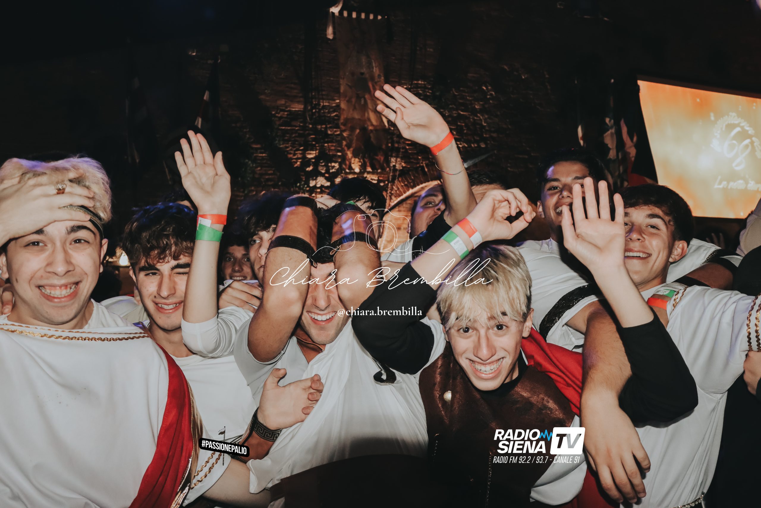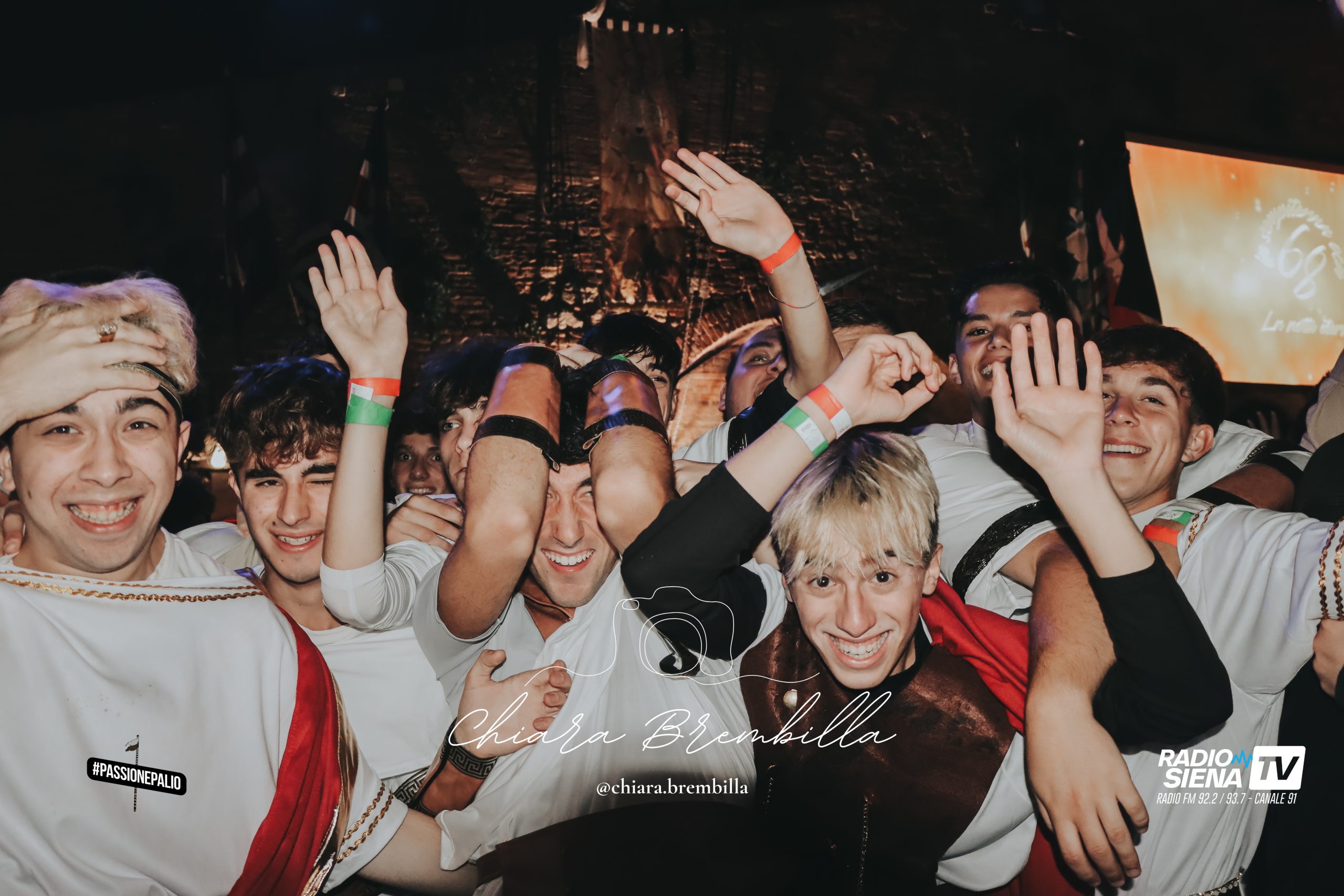 La serata finale di festeggiamenti della contrada dell’Oca per la vittoria del palio del 3 luglio 2025.