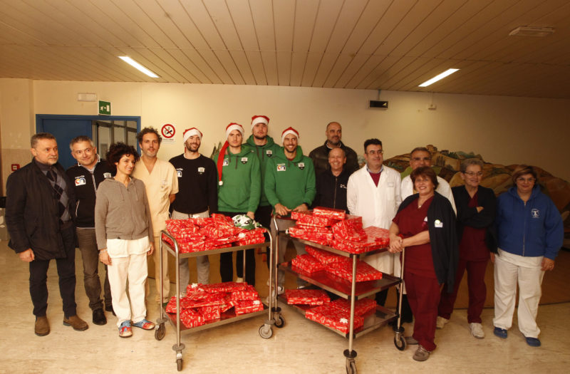 Una delegazione dei biancoverdi ha portato doni e auguri ai giovani degenti