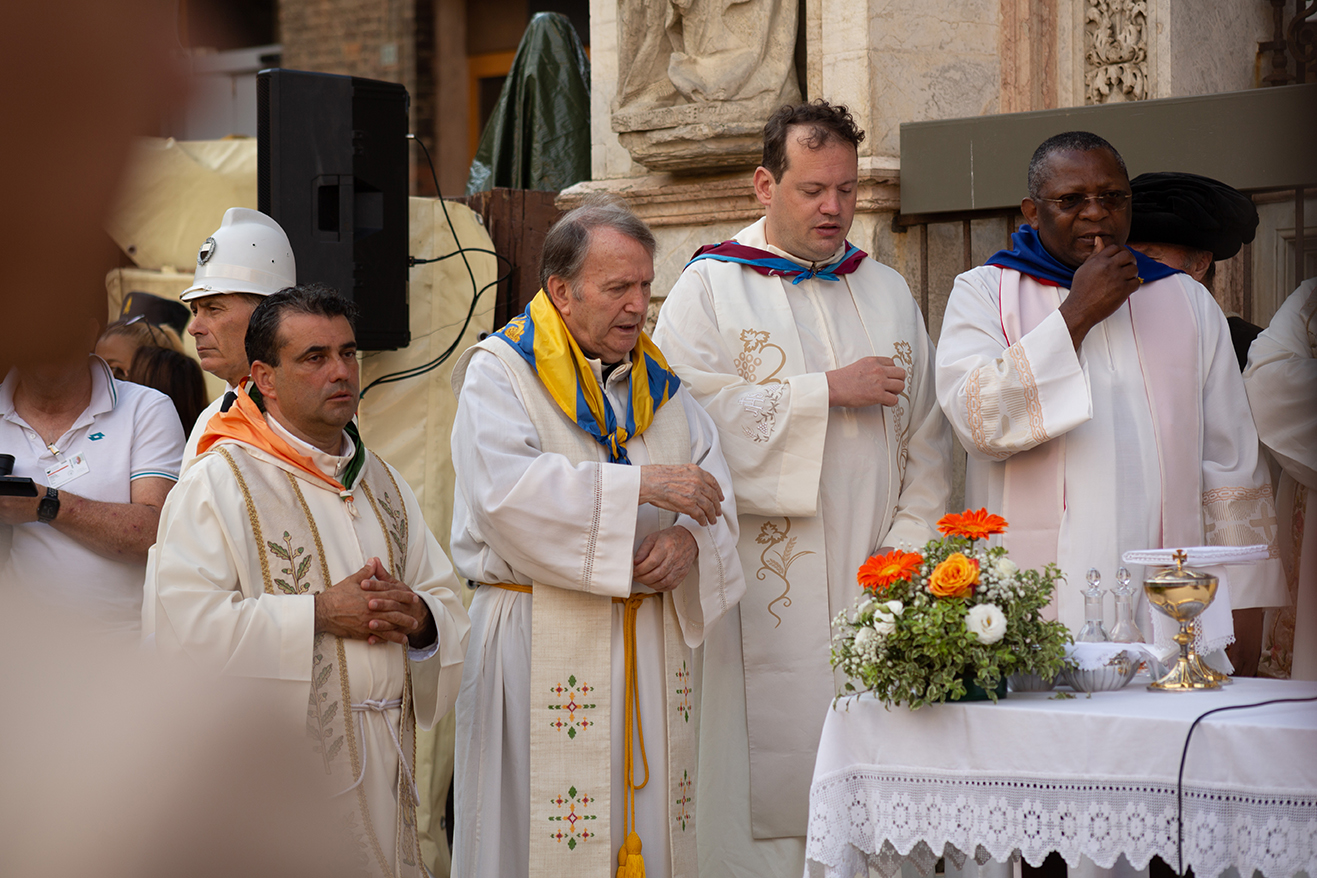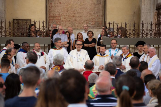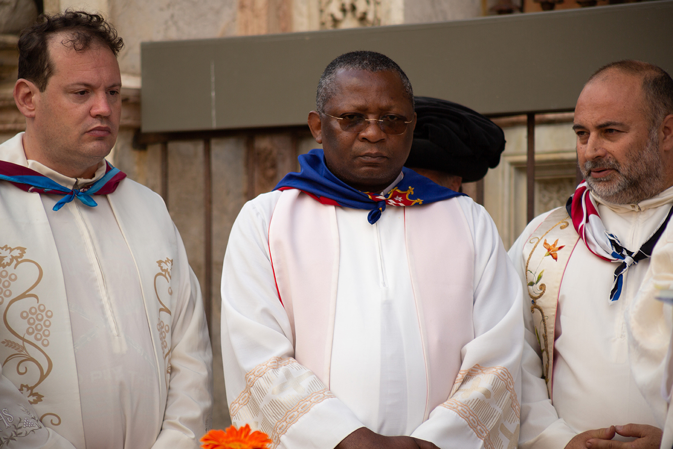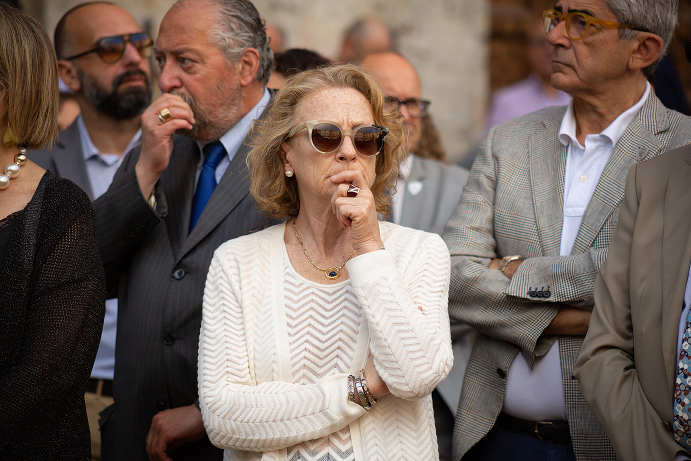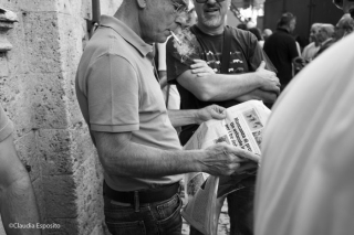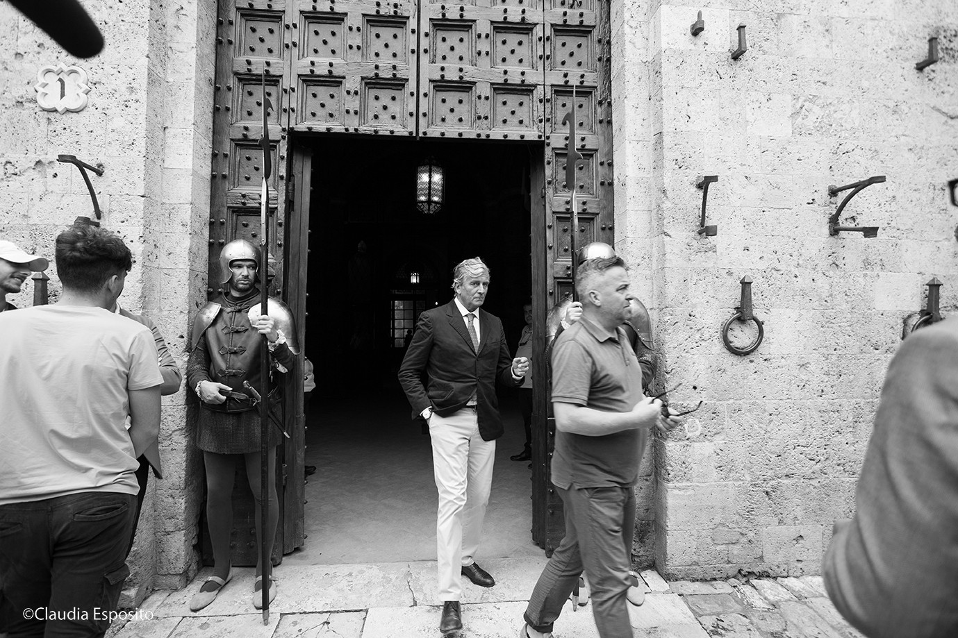 La messa del fantino, la mattina presto, in una Piazza poco affollata. Poi la segnatura del fantino, a Palazzo Pubblico: un momento solenne e importante, perchè se fino a questo momento la contrada avrebbe potuto cambiare idea e affidare il cavallo ad un altro “condottiero”, da ora in poi non può più farlo. Due riti emozionanti che caratterizzano la prima parte del giorno del Palio e che noi riproponiamo negli scatti realizzati da Claudia Esposito.