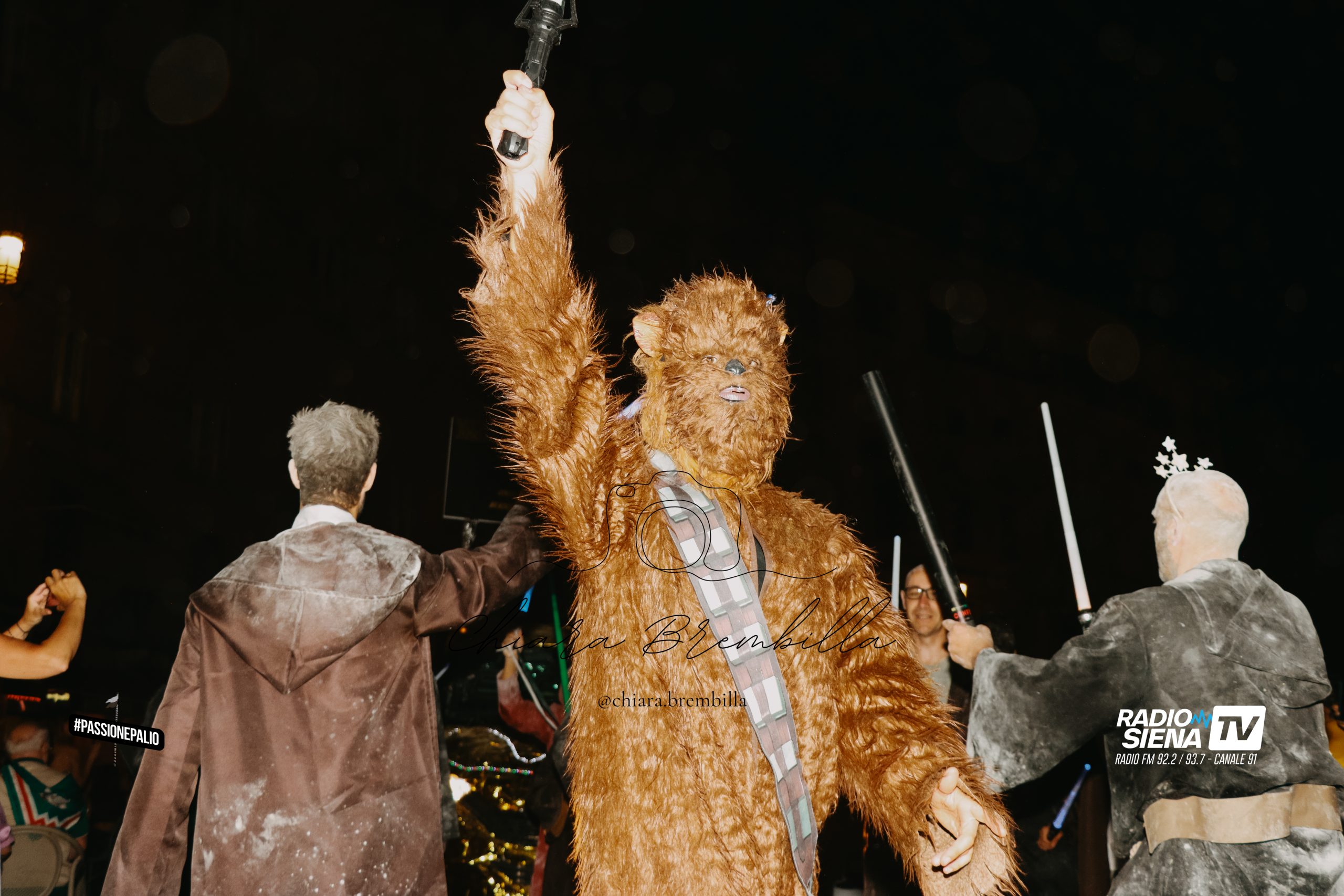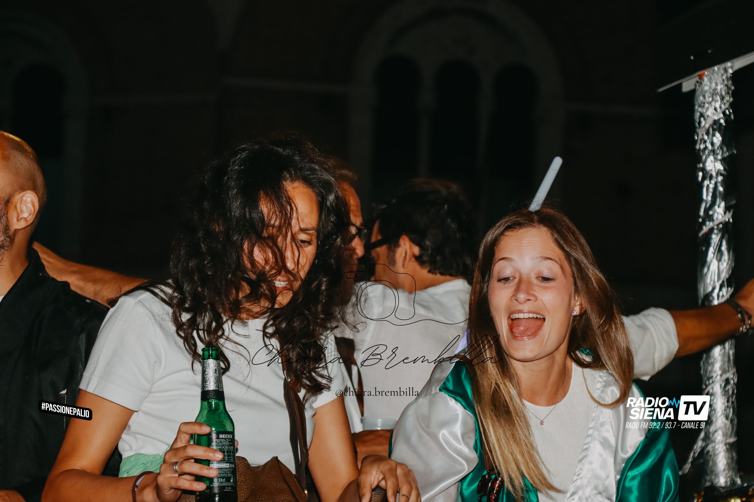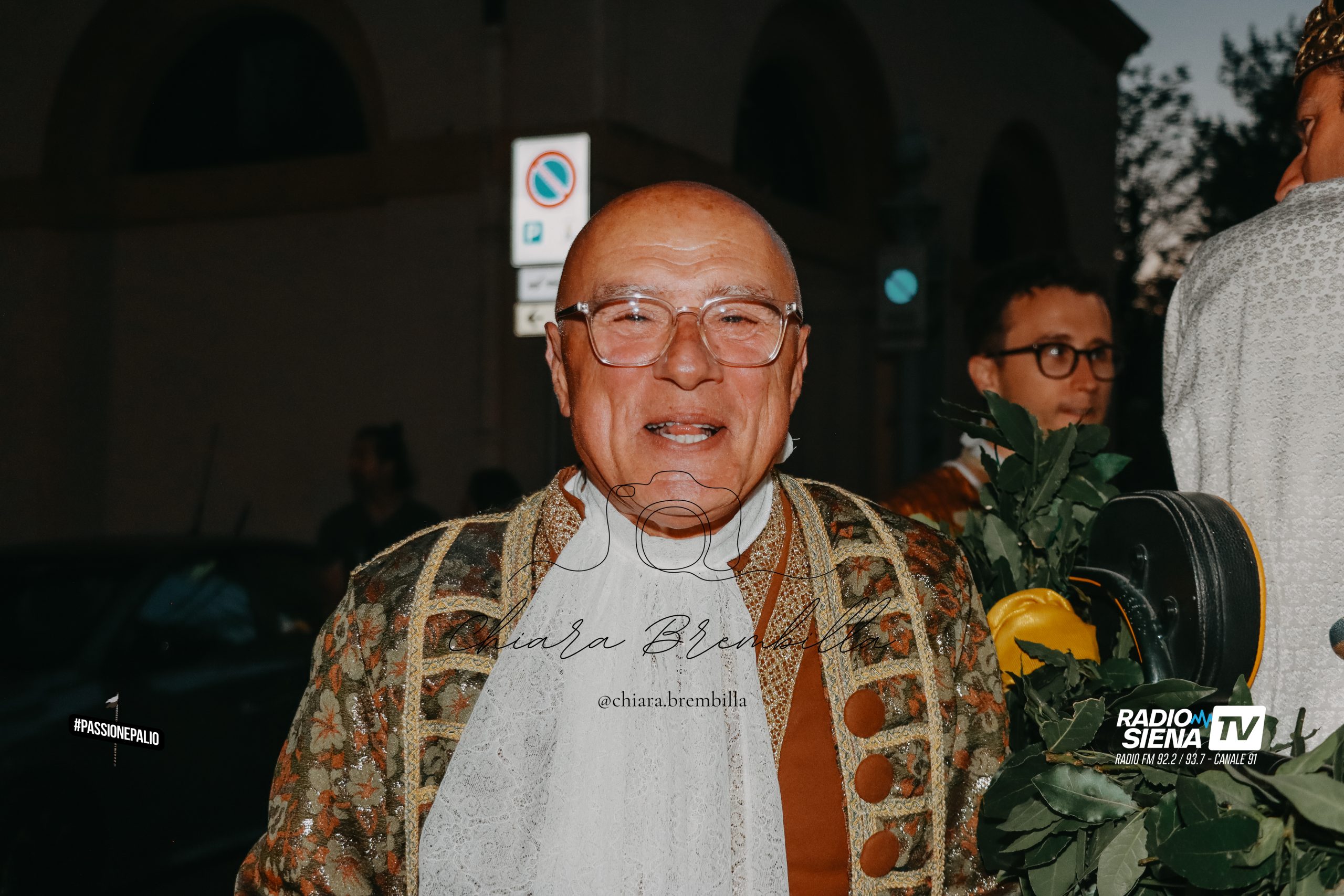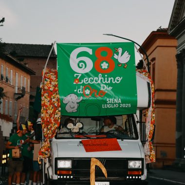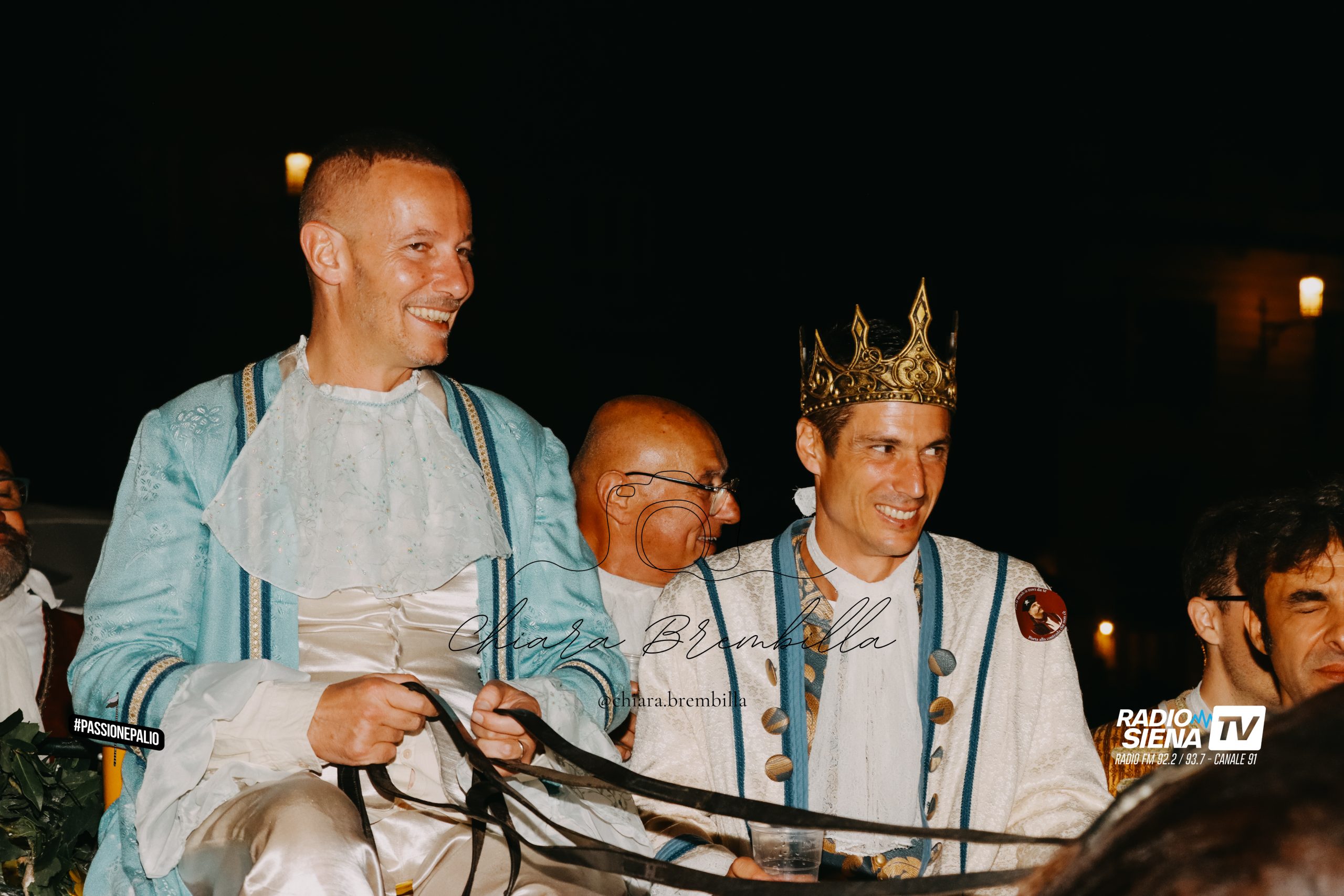 La contrada dell’Oca tinge d’oro la notte di festa. Ieri sera per le strade di Siena il corteo della contrada di Fontebranda, dopo la vittoria del Palio del 3 luglio scorso. Un popolo intero festante con Tittia incoronato re e gran finale con i fuochi d’artificio in Piazza del Campo. Le foto di Chiara Brembilla per Siena Tv
