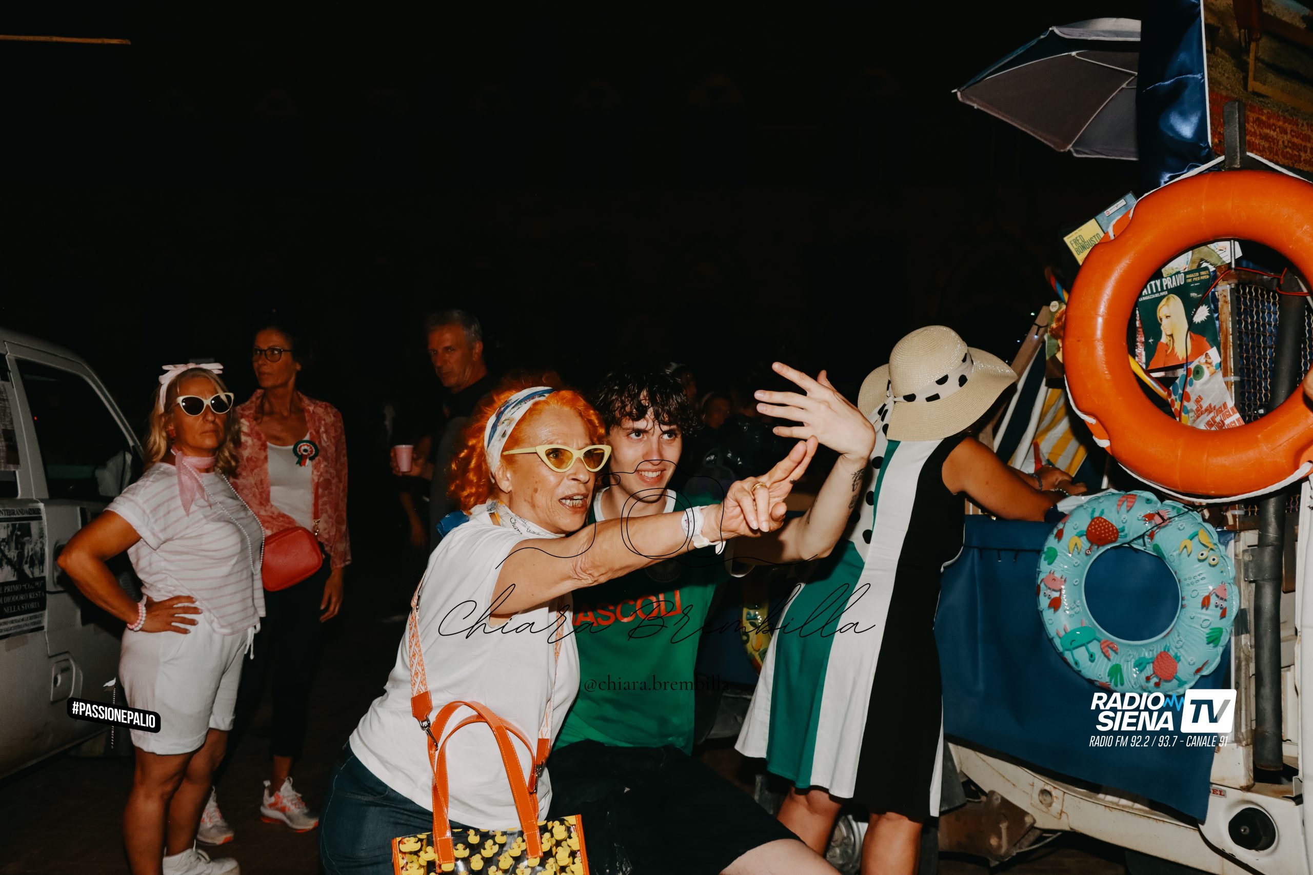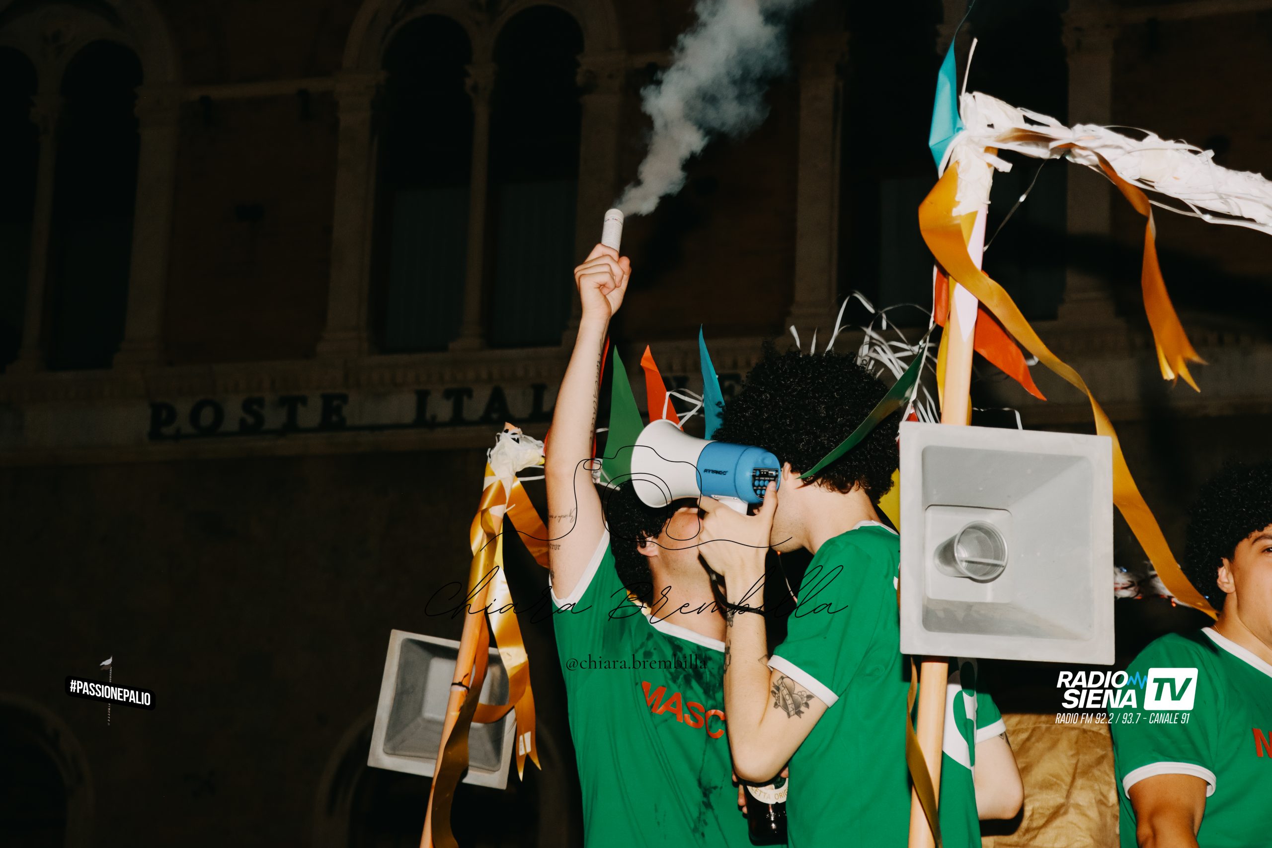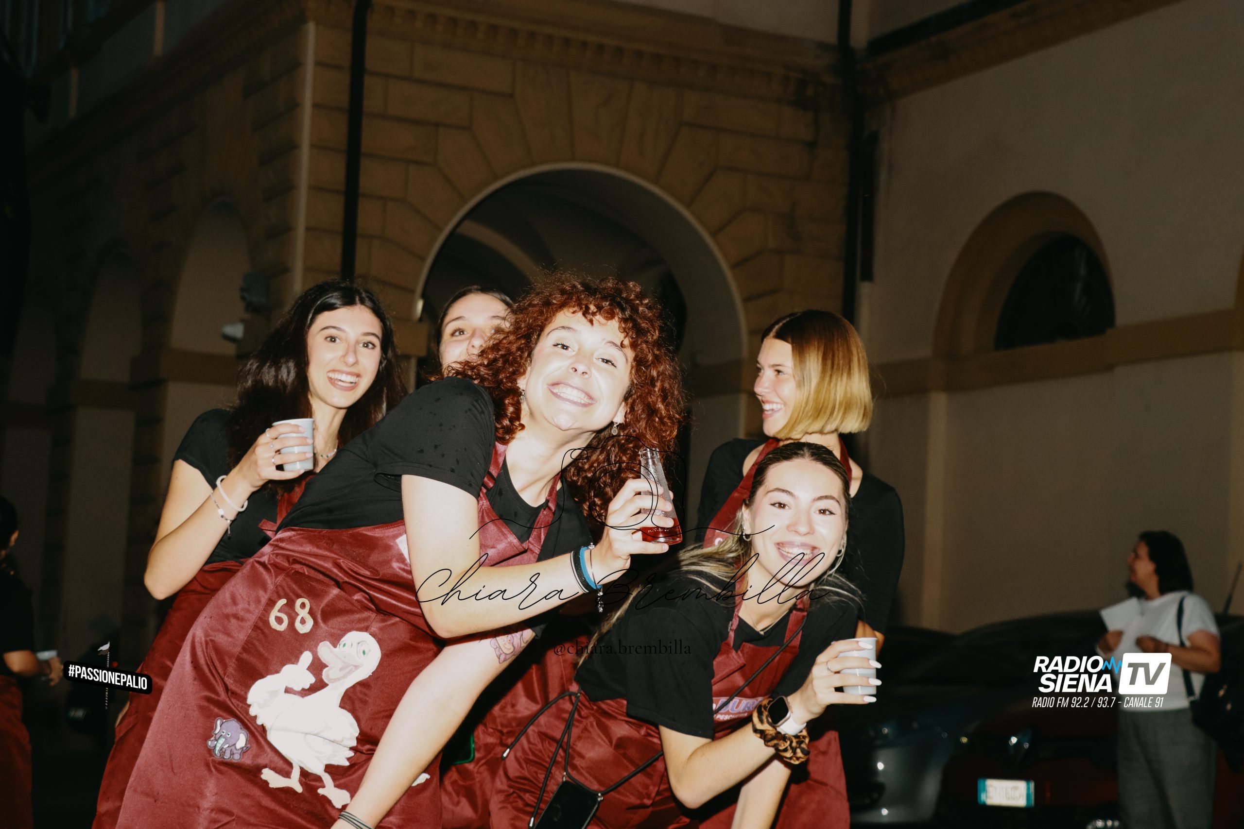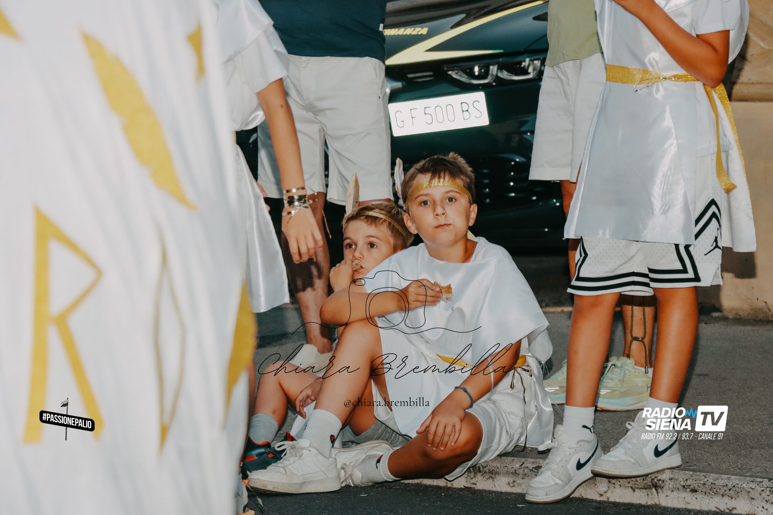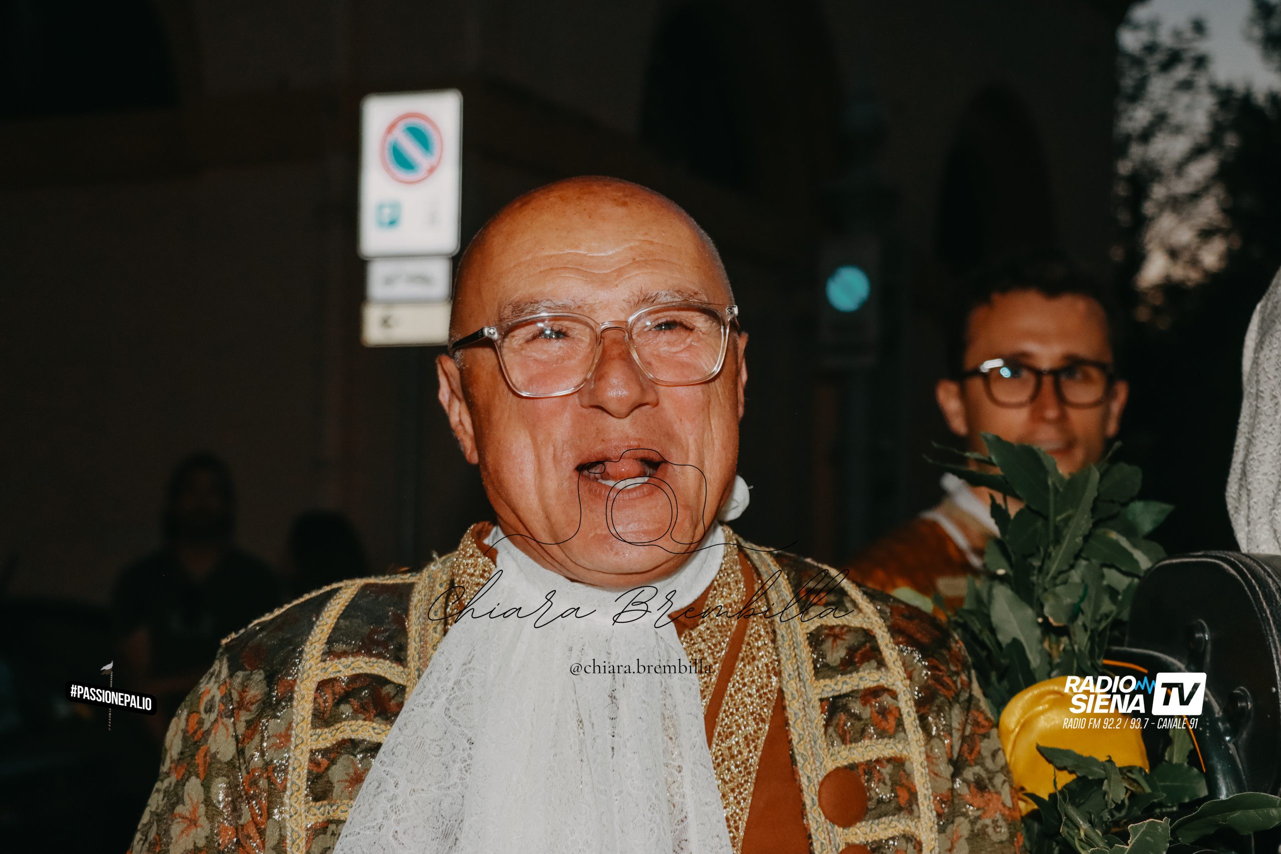 La contrada dell’Oca tinge d’oro la notte di festa. Ieri sera per le strade di Siena il corteo della contrada di Fontebranda, dopo la vittoria del Palio del 3 luglio scorso. Un popolo intero festante con Tittia incoronato re e gran finale con i fuochi d’artificio in Piazza del Campo. Le foto di Chiara Brembilla per Siena Tv