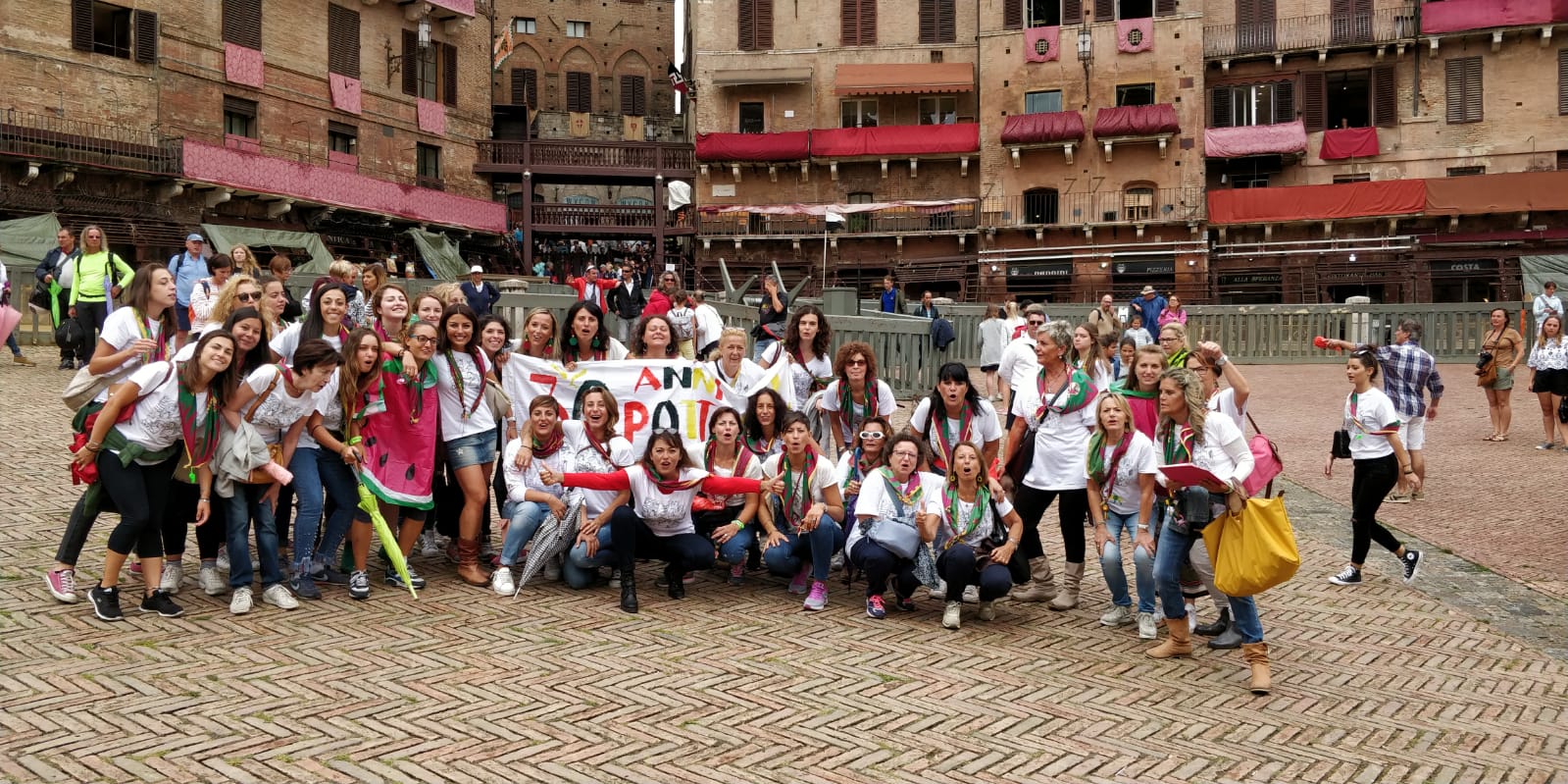 Come di consueto, le donne del Drago hanno dato vita oggi al tradizionale raduno tutto al femminile del 14: in 132 questa mattina sono partite da piazza Matteotti alla volta di Piazza del Campo, dove hanno fatto l’aperitivo, per poi pranzare all’Orto dei Pecci, in un’atmosfera di gioia e felicità, tra canti, divertimento e brindisi, in barba al maltempo.