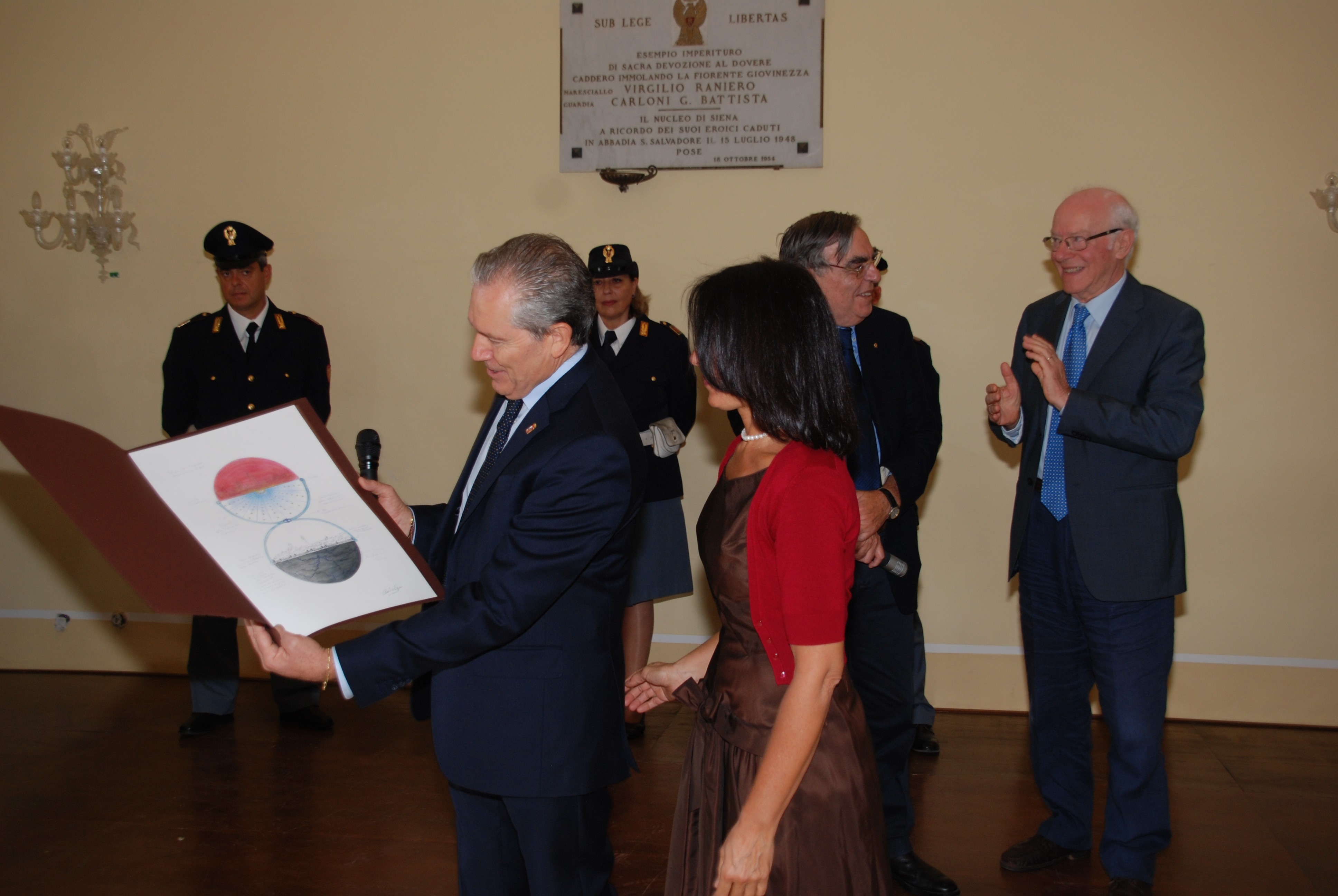 Ospiti della Polizia di Stato, sono stati anche la signora Cristina e Riccardo, moglie e figlio di Marcello Spinosi, il Vice Questore Aggiunto della Polizia di Stato deceduto nel 2000 in un incidente stradale, mentre era in servizio. Hanno partecipato inoltre alle celebrazioni l’artista senese Cecilia Rigacci e i docenti Mario Ascheri e Vinicio Serino.