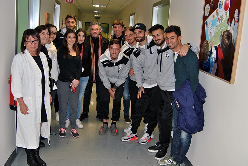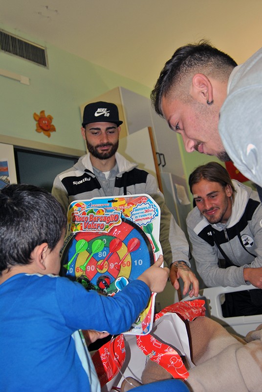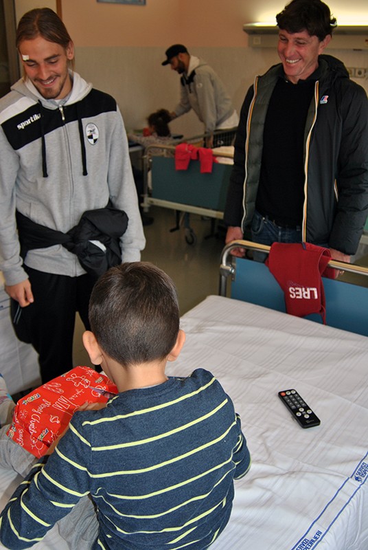 Ancora sorprese per i piccoli degenti del Dipartimento Materno-Infantile dell’Azienda ospedaliero-universitaria Senese. Dopo la visita delle Forze dell’ordine, questa mattina è stata la delegazione della Robur Siena a recarsi al policlinico Santa Maria alle Scotte con un carico di regali e auguri per i giovani pazienti. A fare gli onori di casa il professor Salvatore Grosso, direttore della Pediatria, e gli altri professionisti del Dipartimento. Presente all’iniziativa la presidente della Robur Siena Anna Durio, l’allenatore Michele Mignani ed il suo vice Simone Vergassola, e alcuni calciatori. La delegazione bianconera ha fatto poi visita alla Casa Accoglienza per le mamme della Fondazione “Danilo Nannini” e anche ai bimbi ricoverati nella UOC Neuropsichiatria Infantile diretta dal dottor Joussef Hayek.