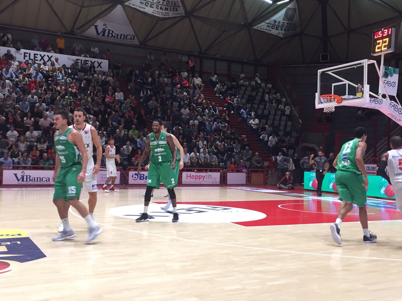 I biancoverdi, dopo i primi due quarti chiusi a -19 (40-21 al 20′), trovano la forza di reagire e mettono paura ai padroni di casa segnando 42 punti contro i 26 dei campani di coach Perdichizzi.
