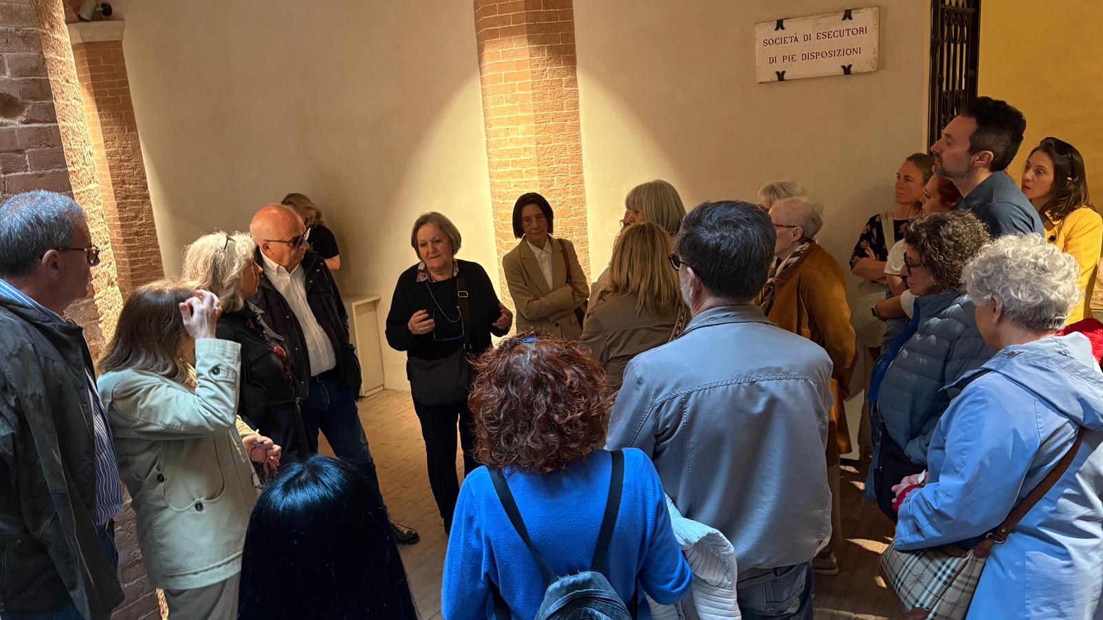A guidare i visitatori, tra storia e significati, è stata anche la storica dell’arte Laura Martini, che ha sottolineato l’eccezionalità dell’opera: “È un capolavoro della pittura del Trecento senese, realizzato prima della peste del 1348, da un pittore straordinario come Lippo Vanni, allievo di Ambrogio Lorenzetti. Ma ciò che la rende unica è soprattutto il soggetto, molto raro”.