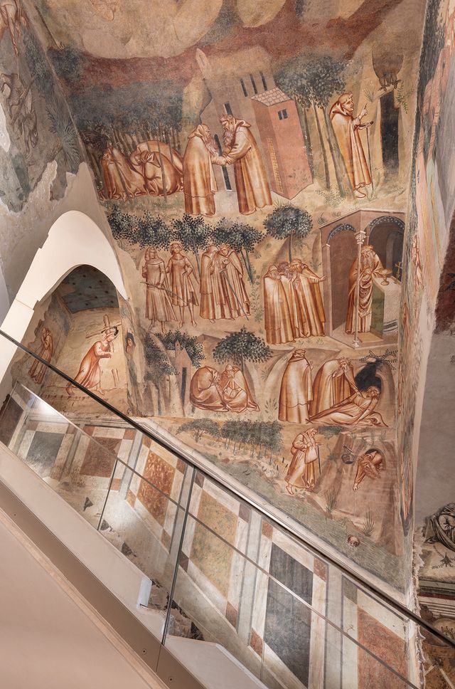 A Siena, un capolavoro della pittura trecentesca torna a risplendere dopo un lungo ed accurato restauro: nel Complesso Museale Santa Maria della Scala, si riscopre la “Tebaide”, il ciclo pittorico riferibile ai primi anni quaranta del Trecento e attribuito a Lippo Vanni, che decora il locale di accesso dell’antica Compagnia dei Disciplinati, oggi sede storica della Società di Esecutori di Pie Disposizioni che ha promosso e realizzato l’intervento