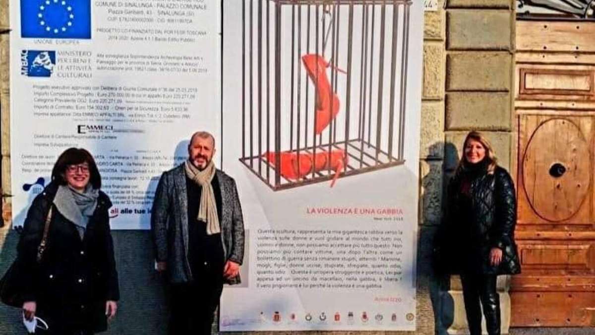 “Per promuovere un cambiamento radicale culturale non è sufficiente ricordarsi solo un giorno all’anno del problema della violenza contro le donne – afferma il Presidente dell’Unione dei Comuni Valdichiana Senese e Sindaco di Trequanda, Roberto Machetti – questo fenomeno, purtroppo strutturale nel nostro contemporaneo, richiede uno sforzo di cambiamento drastico comune di tutti, perché in una società che si dichiara ‘civile’ non possiamo più sacrificare vite umane, famiglie, figli e figlie e tollerarne il dolore e la sofferenza, è un costo sociale che dobbiamo mettere al bando. Per questo occorre essere vigili e ‘pararne’, sensibilizzare costantemente. L’idea di utilizzare le arti visive per ricordarne l’importanza, per cambiare rotta, per proporne le riflessioni, per far capire che esiste una rete antiviolenza pronta ad attivarsi, a disposizione di tutte e tutti, è tra le priorità del Centro Pari Opportunità dei dieci Comuni della Valdichiana Senese. L’opera di Anna Izzo che quasi per un anno intero percorrerà tutti i Comuni, vuole ribadire la necessità di rafforzare la rete antiviolenza, partendo dalle istituzioni in primis, ma ha l’obiettivo di ‘scuotere’ le coscienze per il ‘vero cambiamento’ della nostra società”.