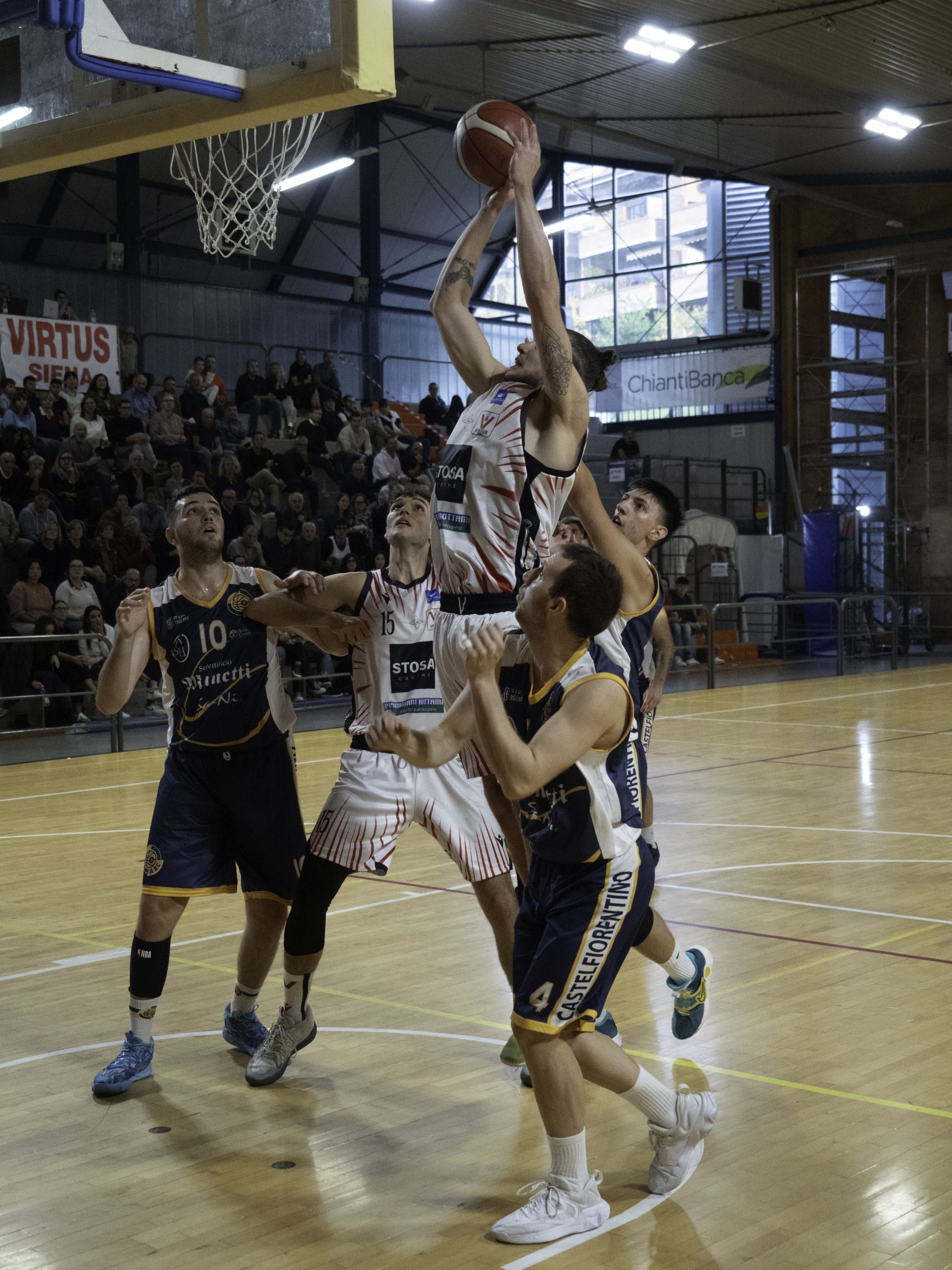 Secondo successo consecutivo per la Stosa che vince in trasferta sul parquet di Castelfiorentino per 60-80. Una grande prestazione in una partita sempre condotta dai rossoblu, che hanno dovuto resistere ai continui tentativi di rimonta dei padroni di casa che non si sono mai dati per vinti, dando vita a una gara molto combattuta che ha visto la Virtus allungare nel finale e portarsi a casa la vittoria, ribaltando la differenza canestri e portandosi a casa due punti molto importanti per la classifica.