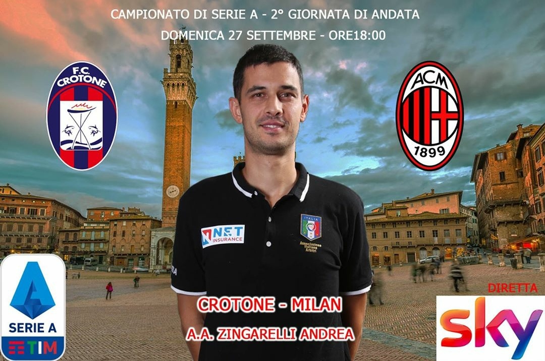 Grande soddisfazione per l’arbitro della sezione senese Andrea Zingarelli: domenica 27 sará assistente arbitro di un altro match di Serie A, Crotone-Milan, valevole per la seconda giornata del campionato. Classe 1986 e originario di Castellina in Chianti, Zingarelli ha fatto tutta la trafila passando dai campionati Primavera, Serie C fino alla chiamata come assistente arbitrale in A a luglio, per la ripresa del campionato interrotto causa pandemia. La squadra arbitrale di Crotone-Milan è composta da Luca Pairetto di Nichelino (arbitro), Mauro Galetto di Rovigo, Giovanni Ayroldi Molfetta, VAR Maurizio Mariani di di Aprilia, AVAR Alessandro Costanzo di Orvieto.
