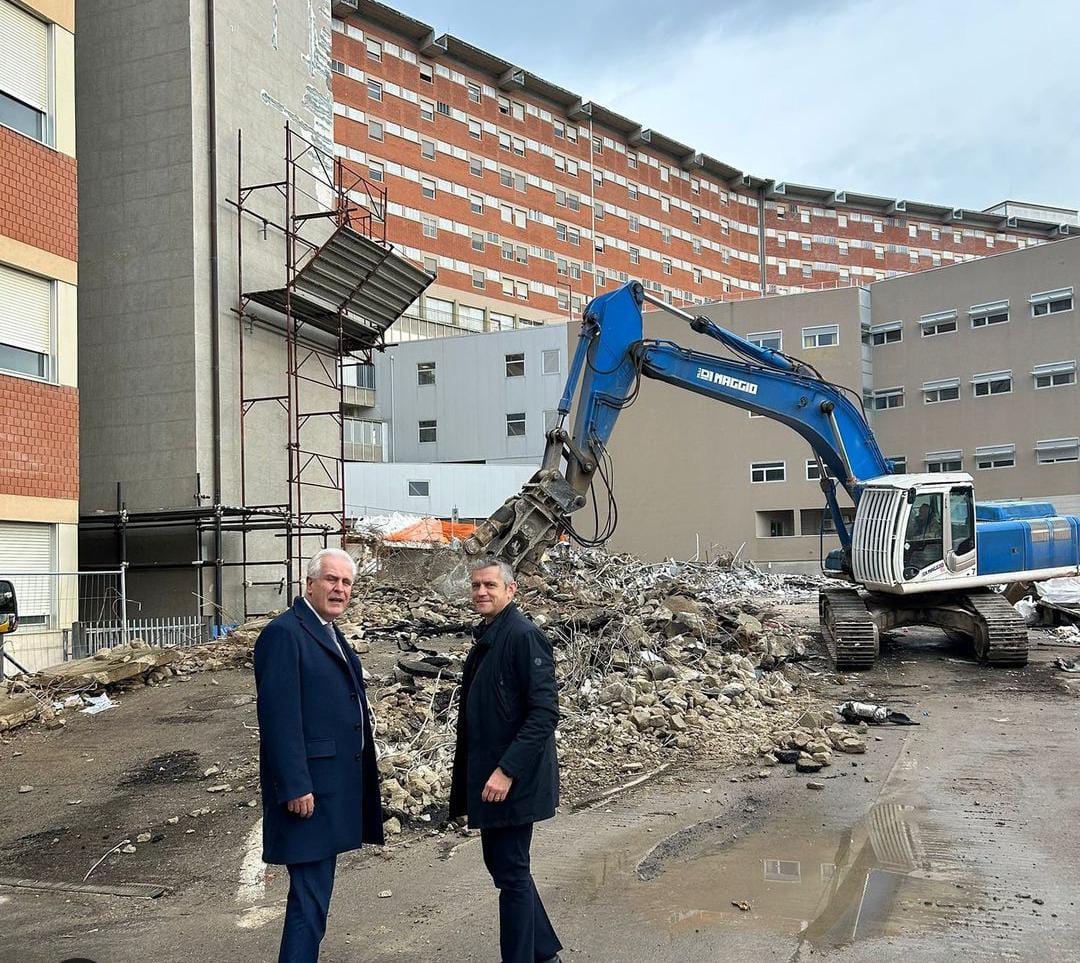 Proseguono i lavori di edificazione del nuovo edificio volano dell’ospedale le Scotte di Siena. Oggi il presidente della Regione Toscana ha visitato il cantiere per un sopralluogo insieme al dg dellAou Senese Antonio Barretta. In corso le opere di demolizione dell’edificio che ha ospitato negli ultimi 15 anni la Farmacia ospedaliera dell’ospedale Santa Maria alle Scotte e il magazzino farmaceutico, che farà spazio al nuovo edificio volano, per complessivi 50 milioni. “Con questa realizzazione – commenta Giani – si potenzieranno i servizi sanitari con più innovazione e tecnologie”.